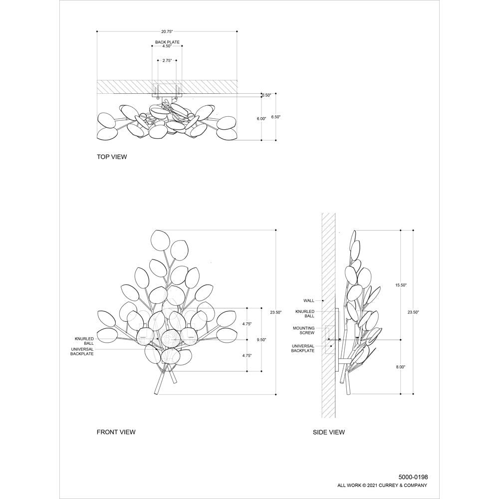 Currey & Company 5000-0198 Lunaria Wall Sconce in Contemporary Silver Leaf