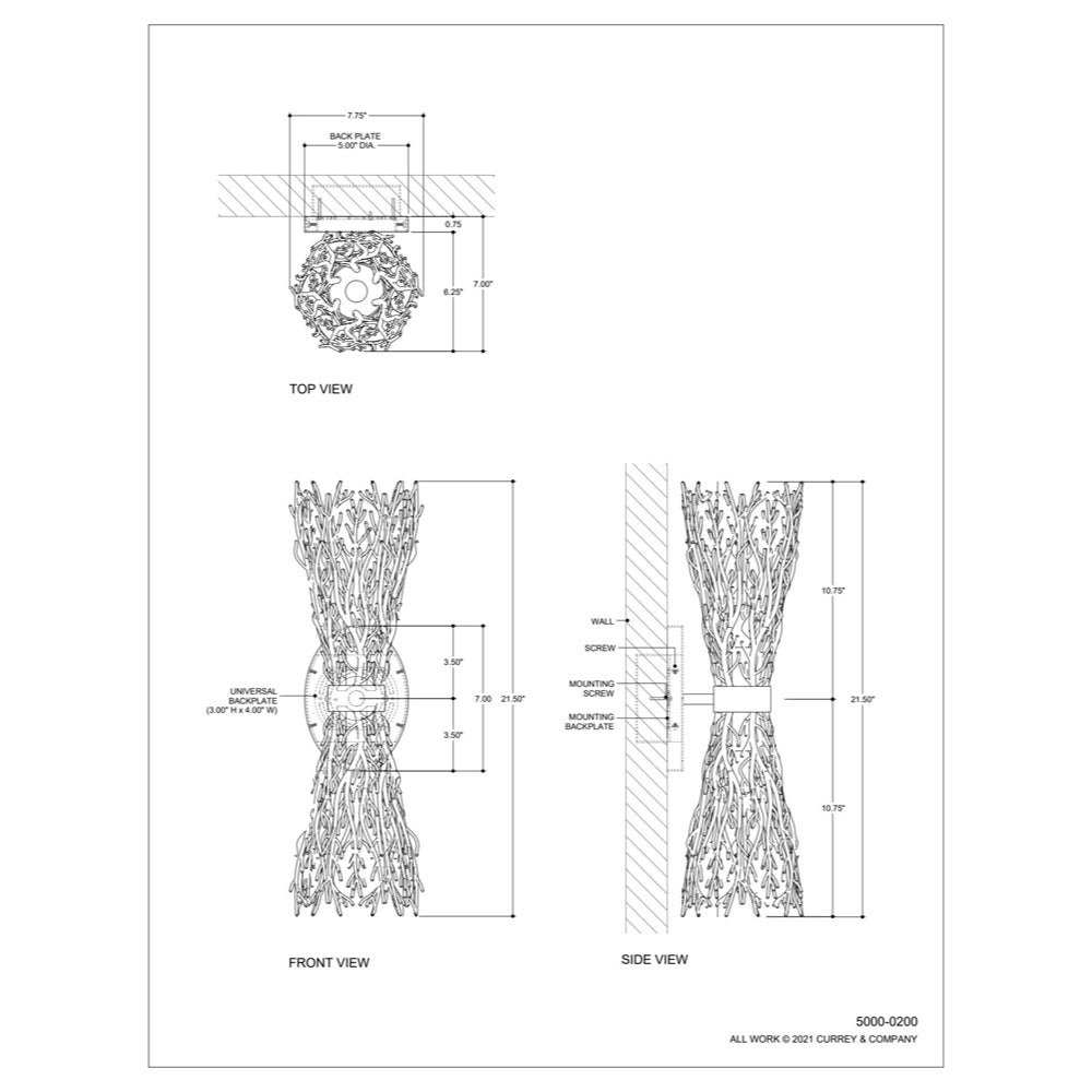 Currey & Company 5000-0200 Sea Fan Wall Sconce in Gold Gilt