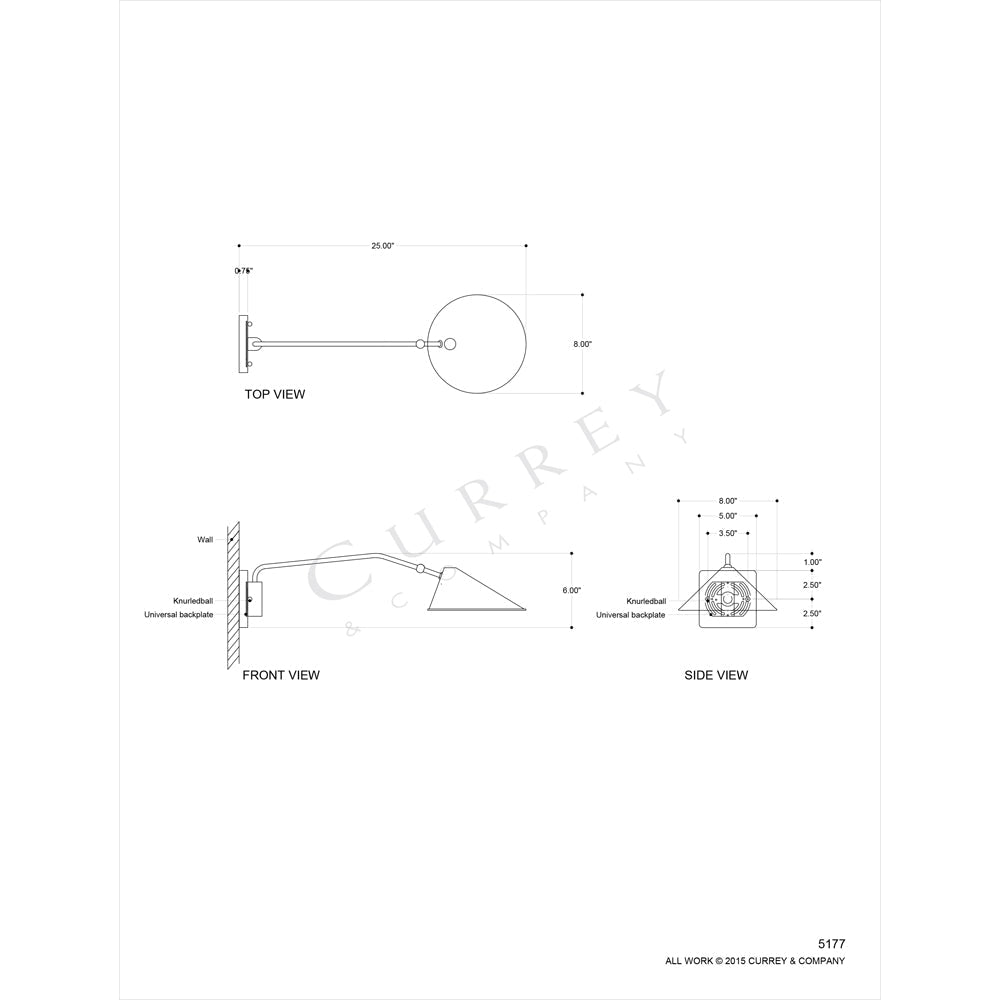 Currey & Company 5177 Serpa Single Wall Sconce in French Black/Gold Leaf