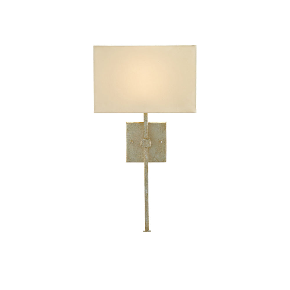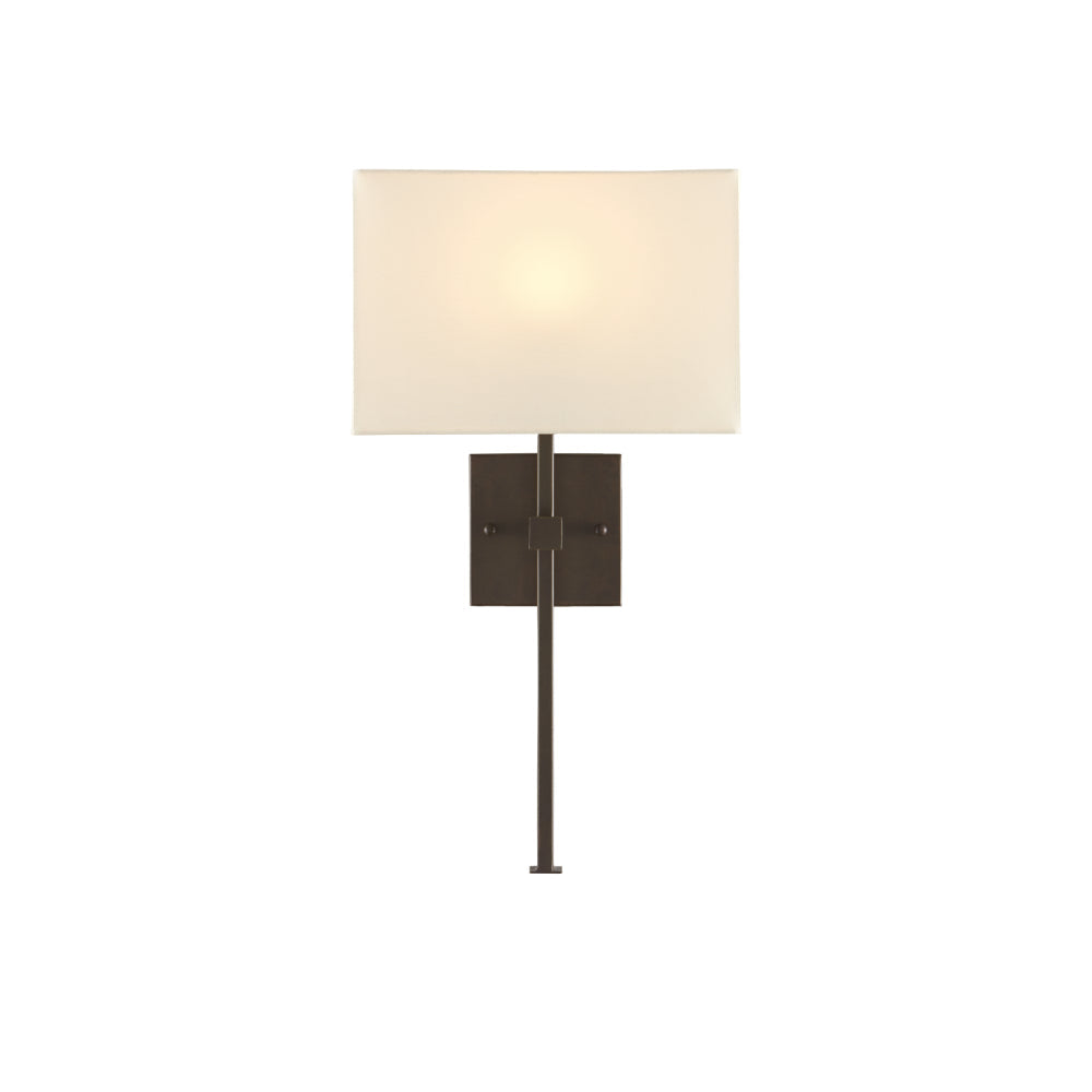 Another of our sconces that references vintage designs, our Ashdown Bronze Wall Sconce has pared-down lines. The bronze gold finish contrasts the champagne silk shade. This sconce meets ADA requirements. We also offer the Ashdown in silver leaf and gold leaf finishes.