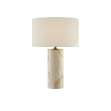 A tall column of swirling marble makes our Vespera Table Lamp a clean-lined luminary with loads of personality. The beige and tan veining will make each of these beige table lamps unique. The metal hardware in an antique brass finish draws out the darker tones in the lamp's body, while the off-white shantung shade echoes the pale tones in the lustrous marble.