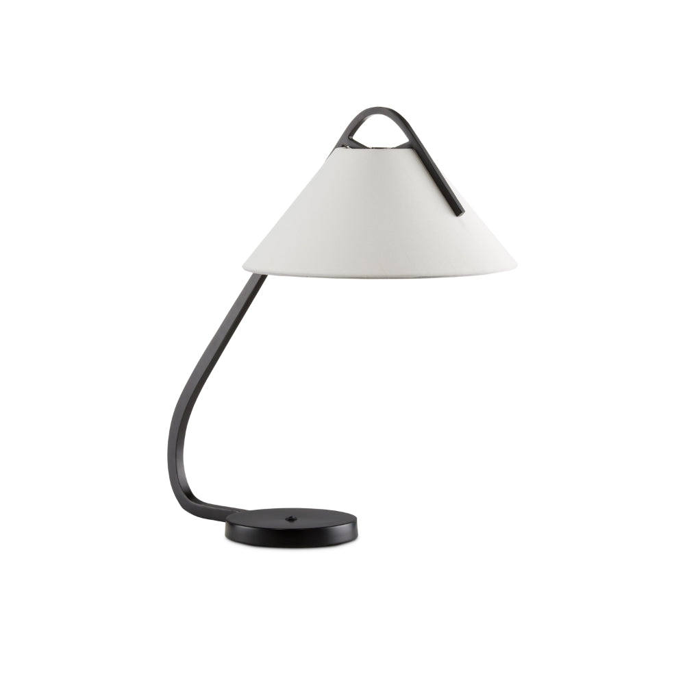The home office has been given new life during the 21st century, so task lights with high style are in high demand. Ian Thornton had this in mind when he designed the Frey Desk Lamp made of steel in an oil-rubbed bronze finish. The way the off-white shade is fitted to the curving arm is a design detail of note, as it lends the profile a subtle Asian flair. The base has a rocker switch for ease of turning the black desk lamp on and off.