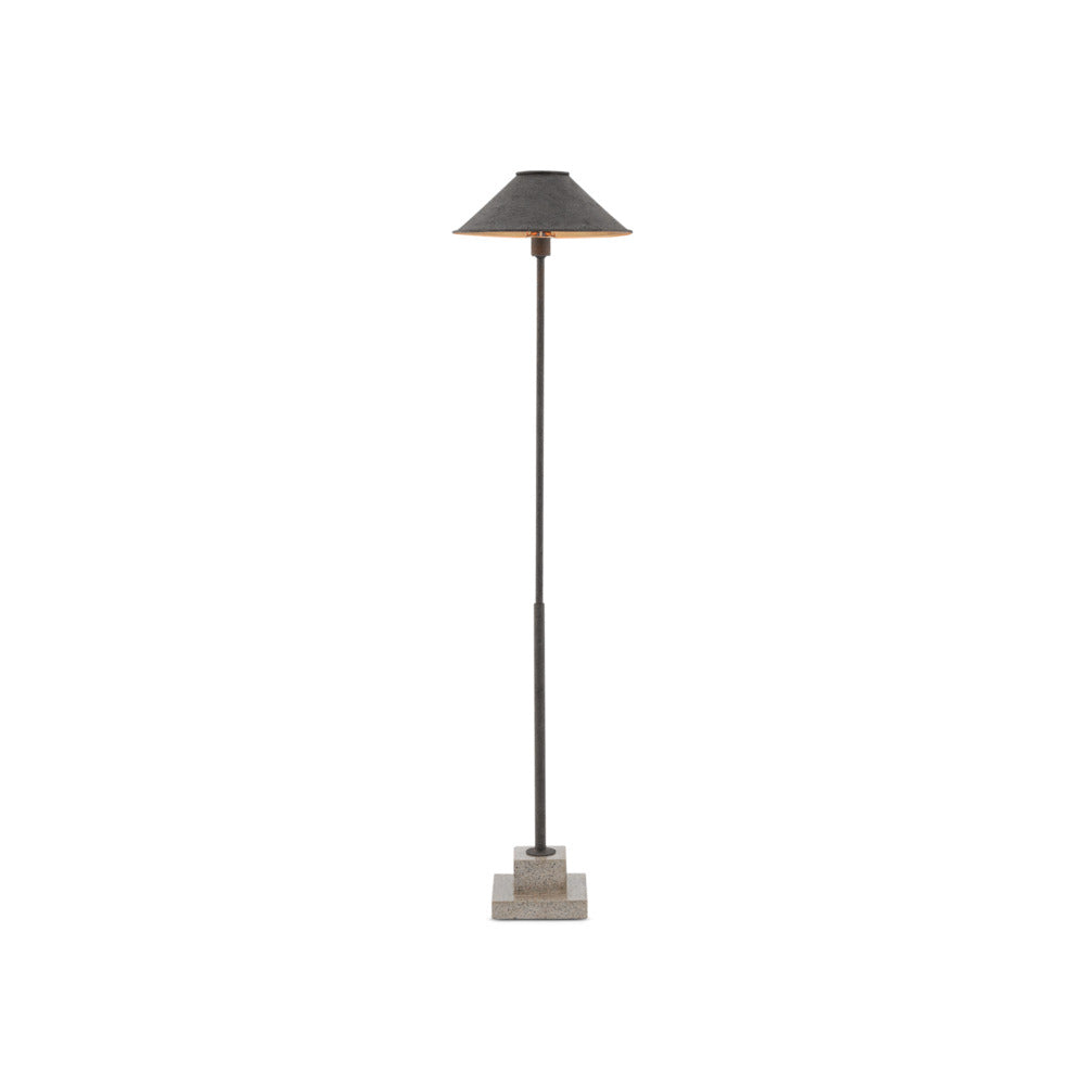 Currey & Company 8000-0016 Fudo Floor Lamp in Mole Black/Contemporary Gold Leaf/Polished Concrete