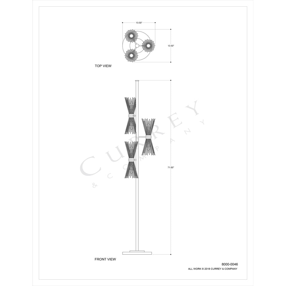 Currey & Company 8000-0046 Novatude 6 Light Floor Lamp in Antique Gold Leaf/Contemporary Silver Leaf