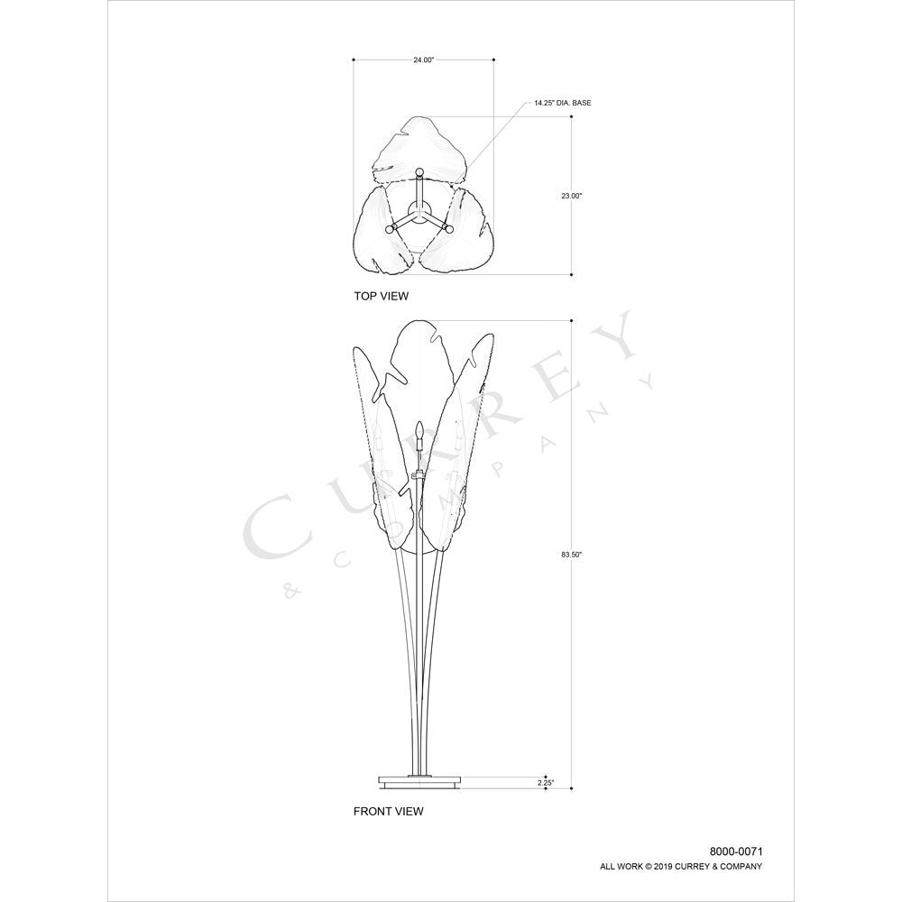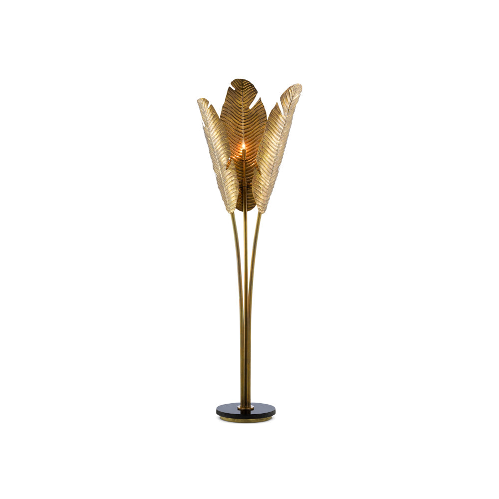 Currey & Company 8000-0071 Tropical 3 Light Floor Lamp in Vintage Brass/Black