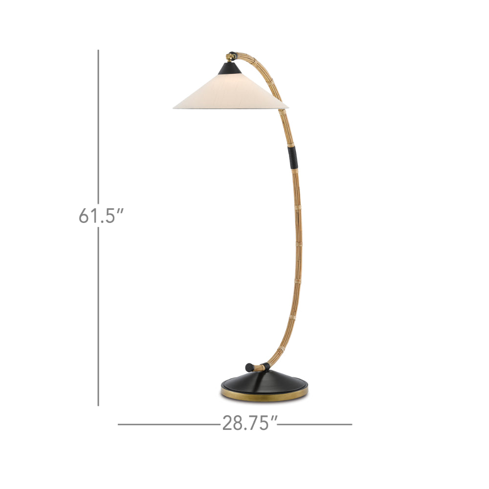 Currey & Company 8000-0088 Lisbon 1 Light Floor Lamp in Natural/Rattan/New Brass/Satin Black