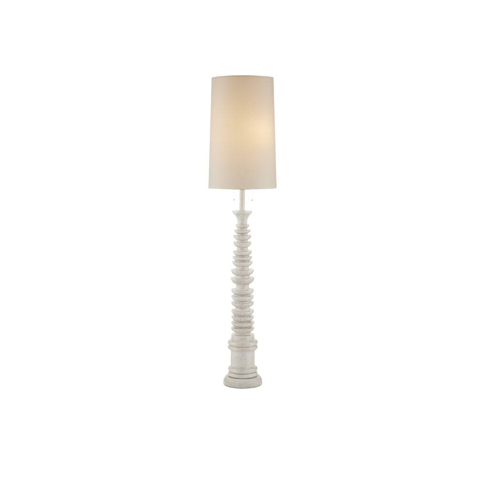 Rising like a temple spire on a mountainside in a faraway land, the Malayan White Floor Lamp has the elemental flair that gives master woodworkers bragging rights. The fluted body is made of rubber wood in a whitewash finish. The tall, thin linen shade placed atop this composition from the Phyllis Morris Collection makes it all the more commanding. The dual pull-chains are delicately sized to keep this design elegant.