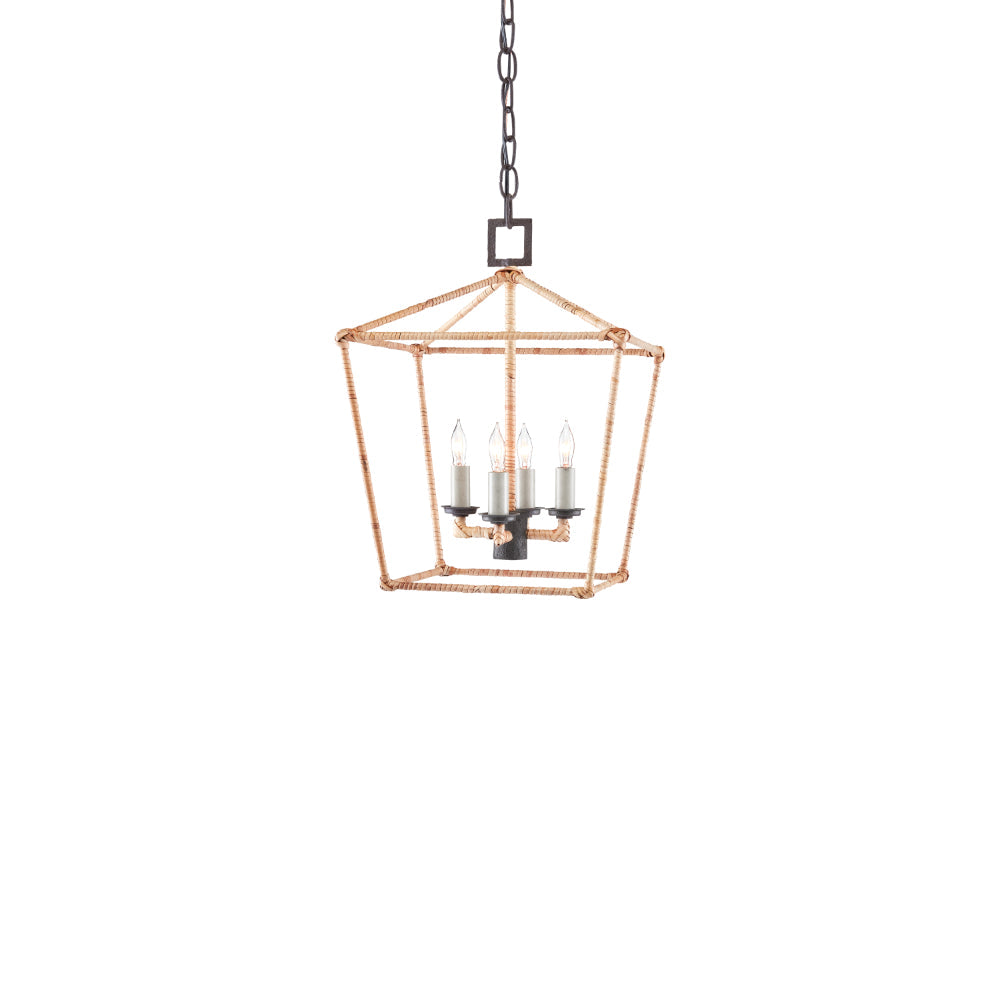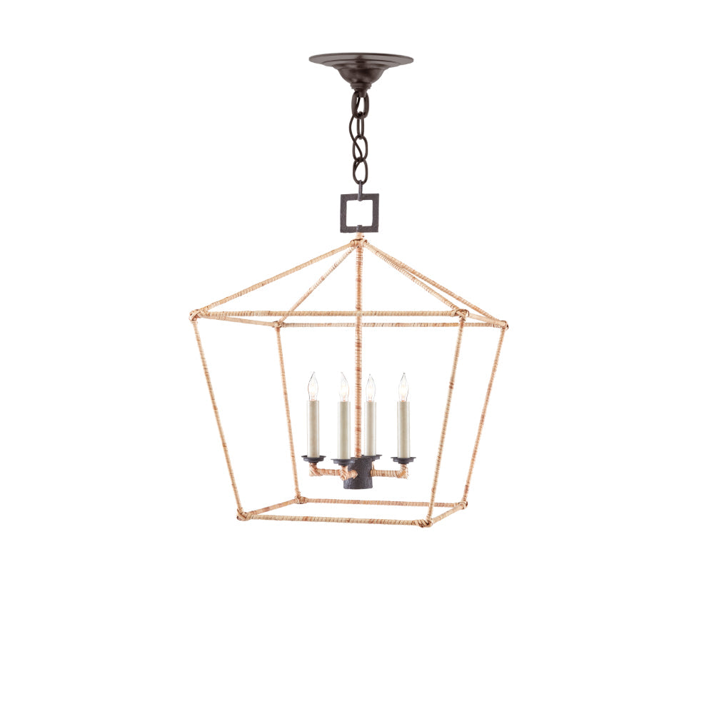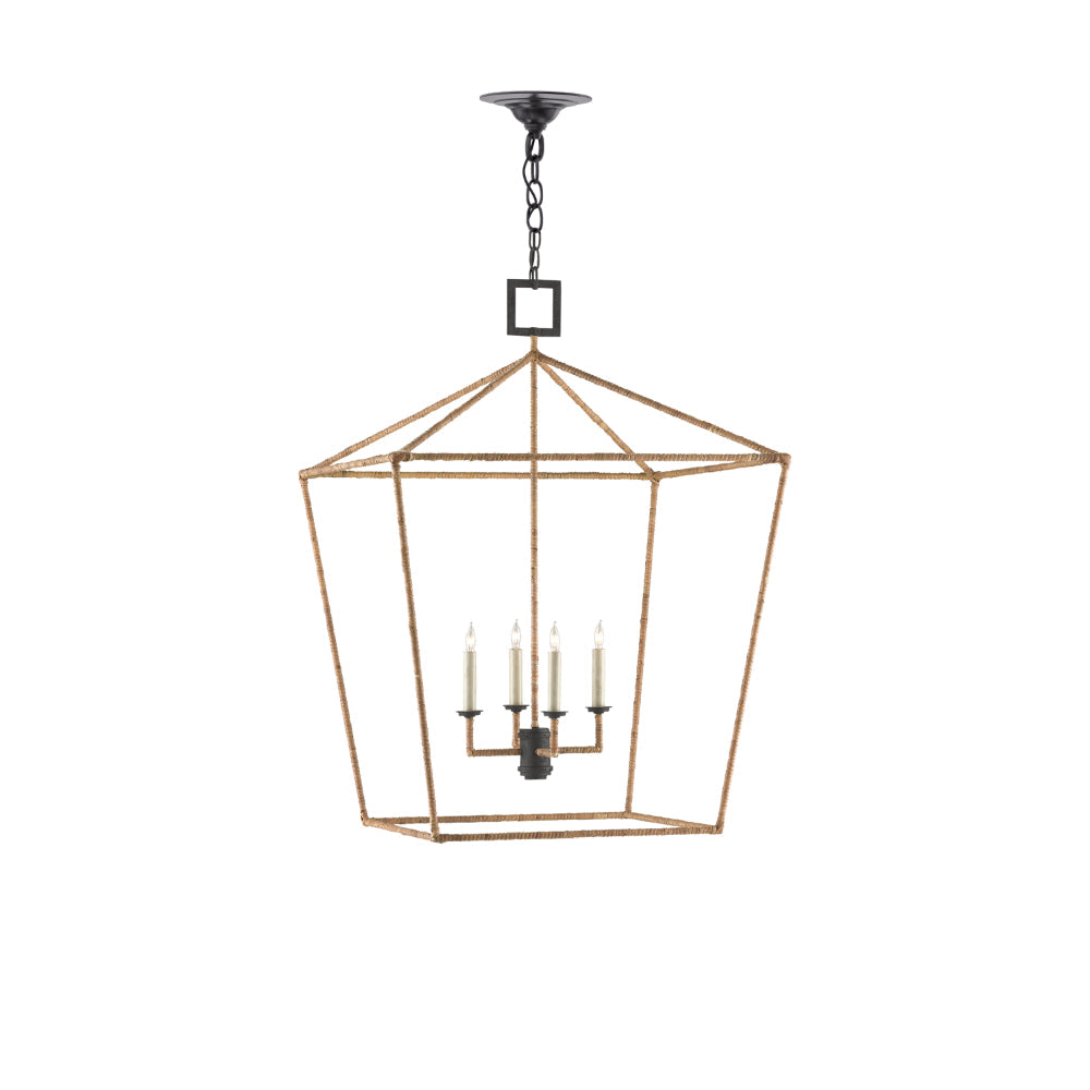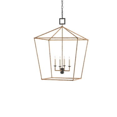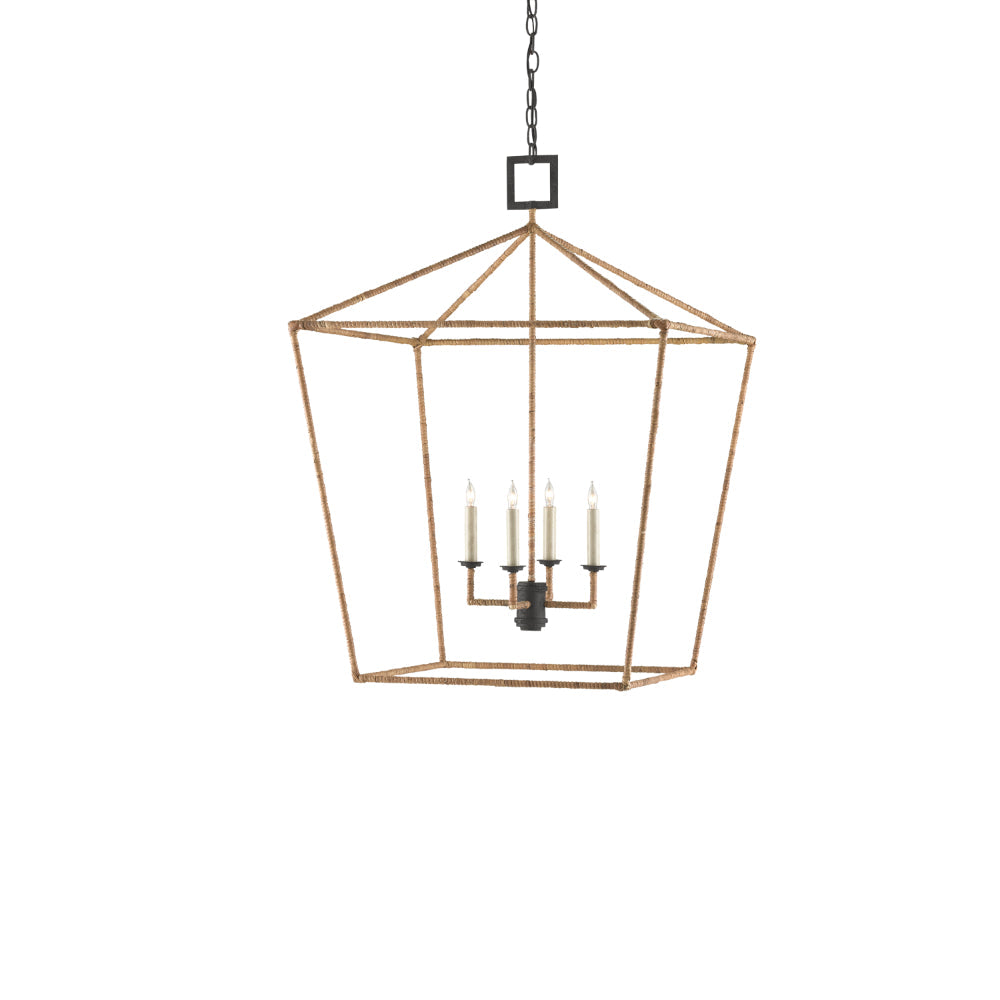 Currey & Company 9000-0-C1 Denison Rattan 4 Light Lantern in Mole Black/Natural Rattan