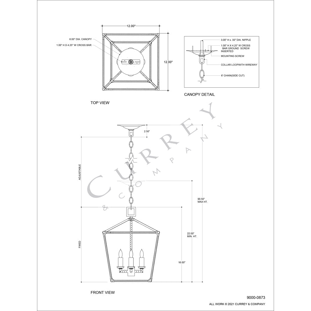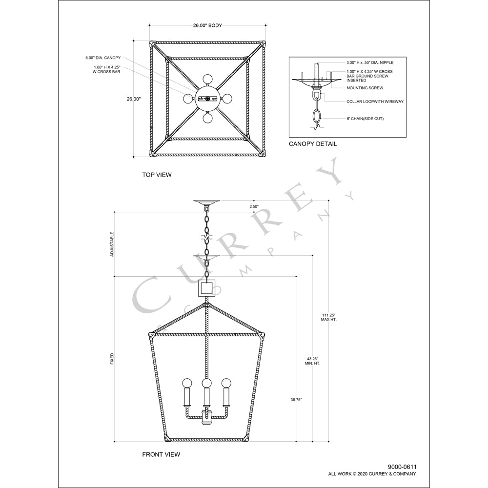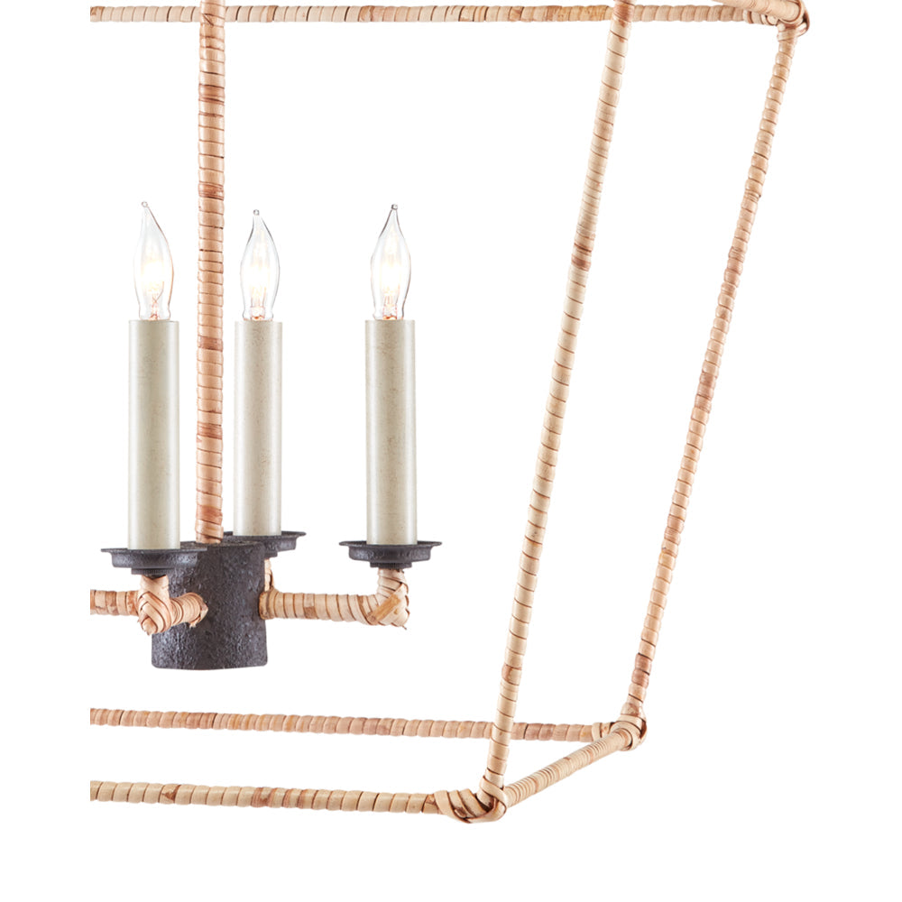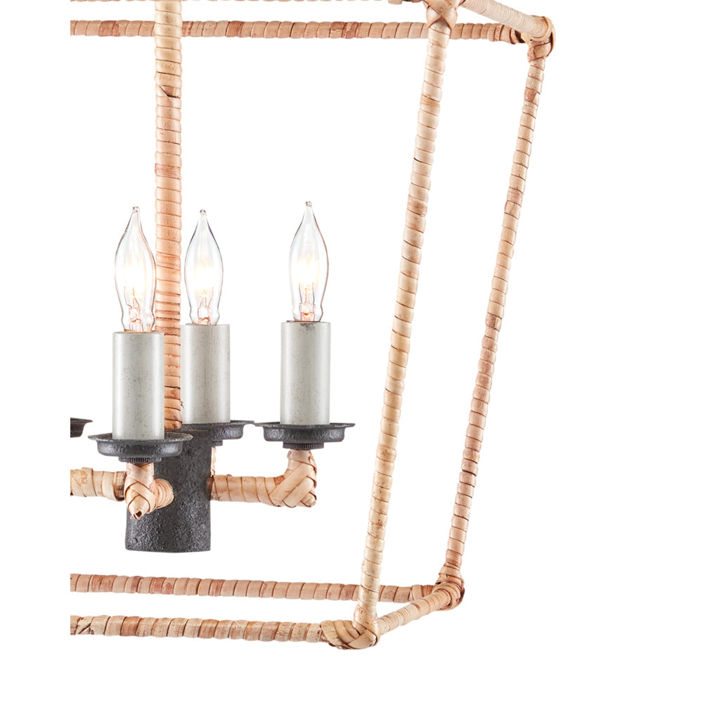 Currey & Company 9000-0-C1 Denison Rattan 4 Light Lantern in Mole Black/Natural Rattan