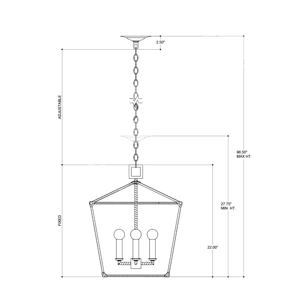 The Denison Rattan Lantern is a hammered wrought-iron fixture in a Mole black finish that is wrapped in rattan. The classic lantern shape has stood the test of time to make it one of our most popular offerings. A design element of note is the square that fastens the lantern to the chain. This is one of a number of sizes and finishes in the Denison family.