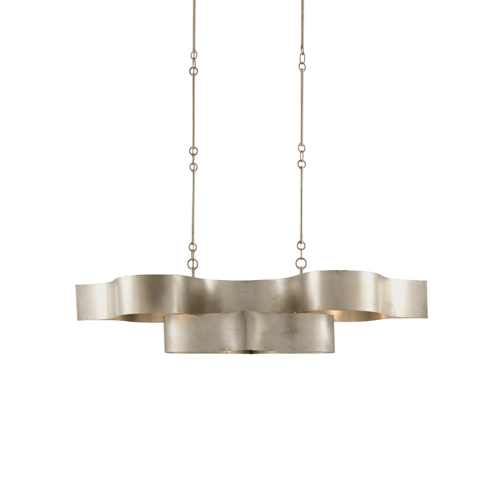 The Grand Lotus Silver Oval Chandelier receives its majestic good looks from a combination of stunning workmanship and antique contemporary silver leaf finish. The silver chandelier is skillfully fashioned from wrought iron. We offer this fixture in a number of styles and finishes.