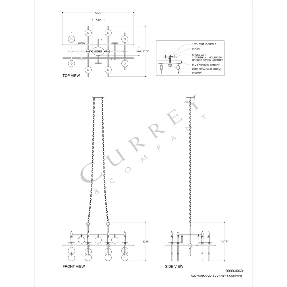Currey & Company 9000-0060 Sethos Rectangular 8 Light Chandelier in Silver Granello