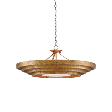 The Belle Chandelier is fashioned from concentric circles that decrease in size as they move toward the bottom. This brings the time-honored shape of the gold chandelier, in our Bunny Williams Collection, a contemporary feel. This is heightened by the gold leaf finish that brings patina to the wrought-iron frame.