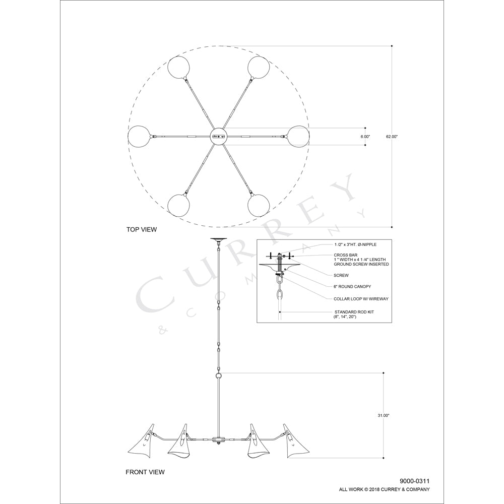 Currey & Company 9000-0311 Library 6 Light Chandelier in Oil Rubbed Bronze/Antique Brass