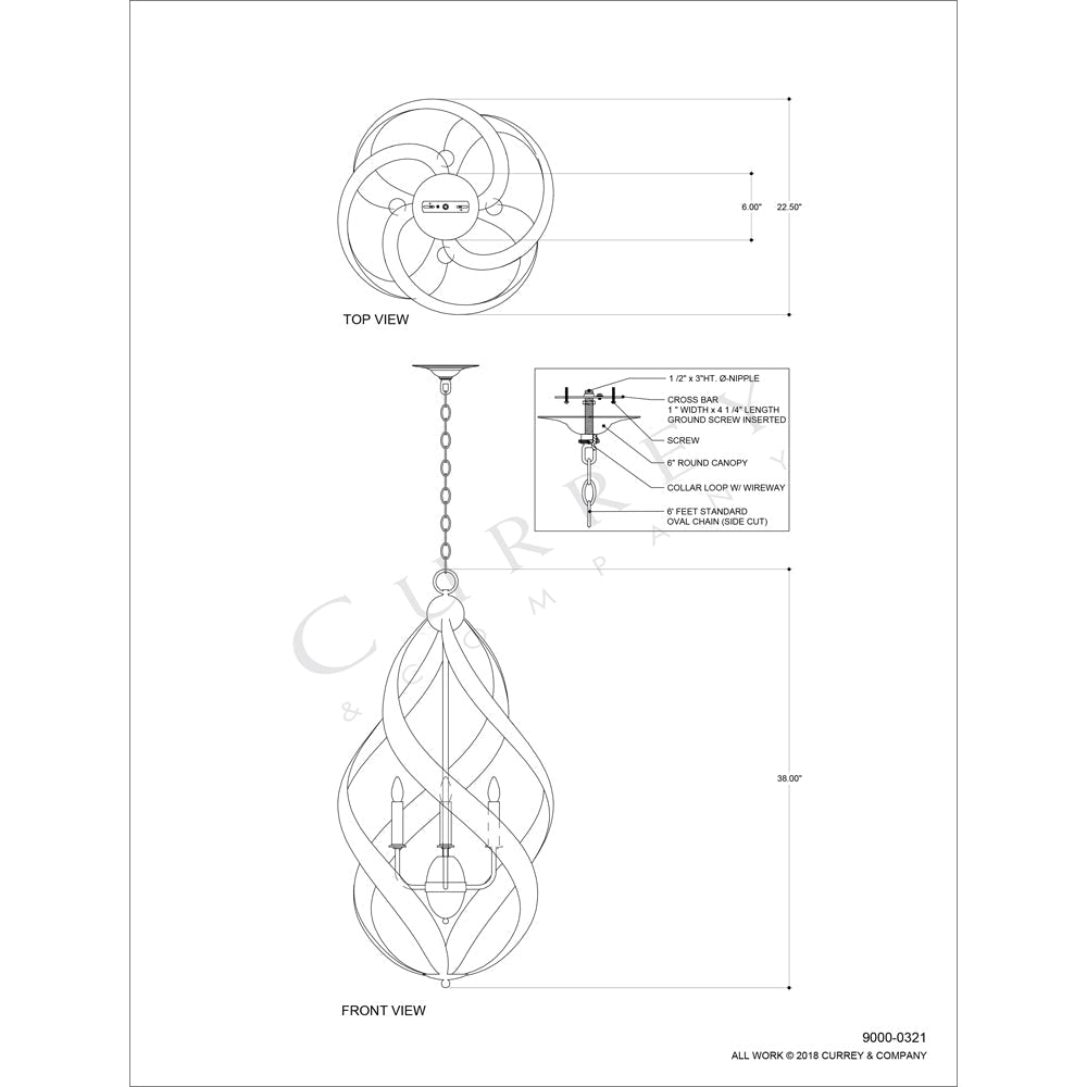 Currey & Company 9000-0321 Trephine 4 Light Chandelier in Contemporary Gold Leaf/Satin Black