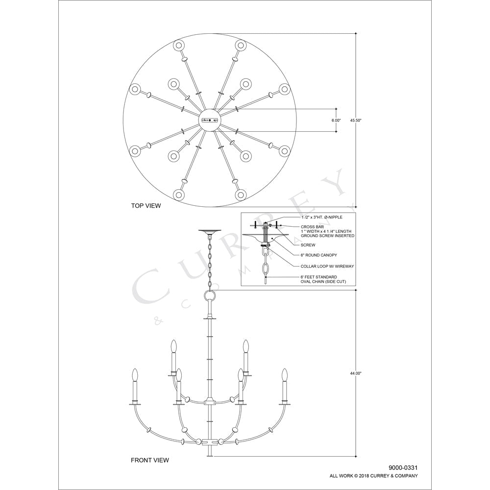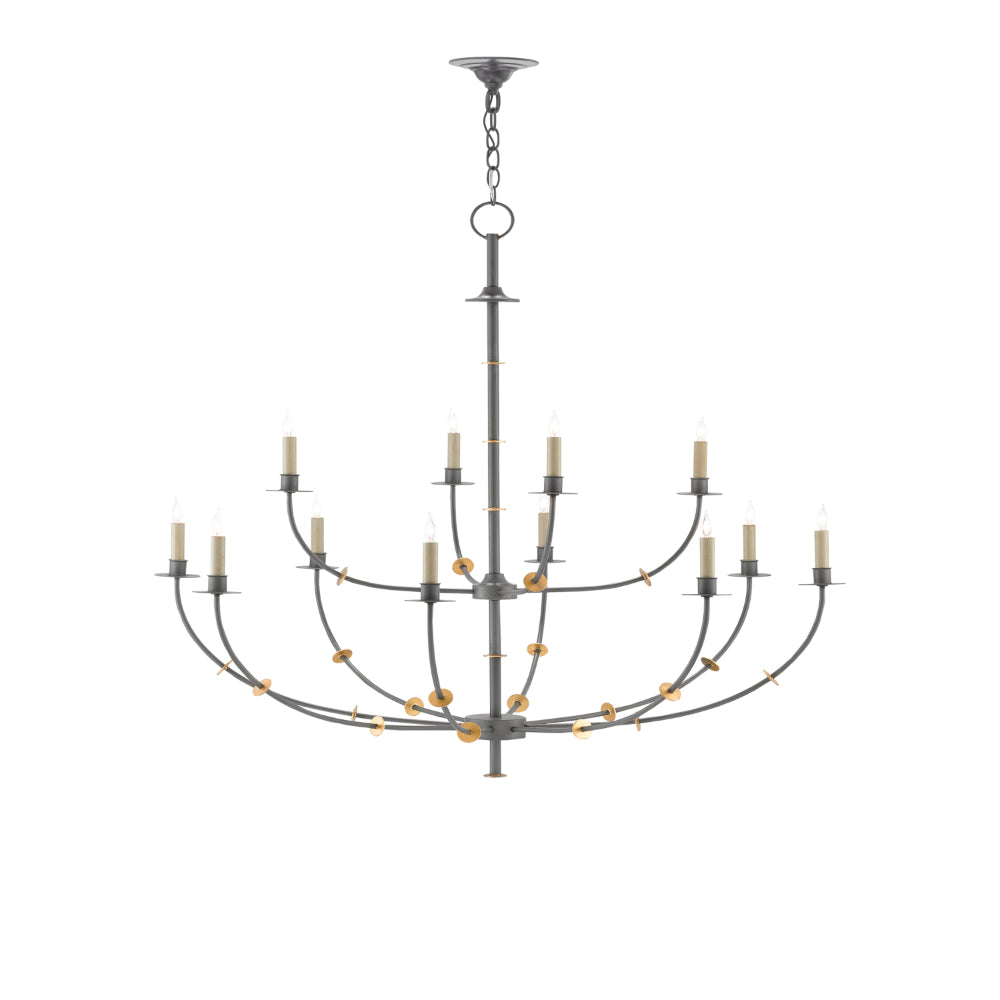 Currey & Company 9000-0331 Balladier 12 Light Chandelier in Hiroshi Gray/Contemporary Gold Leaf