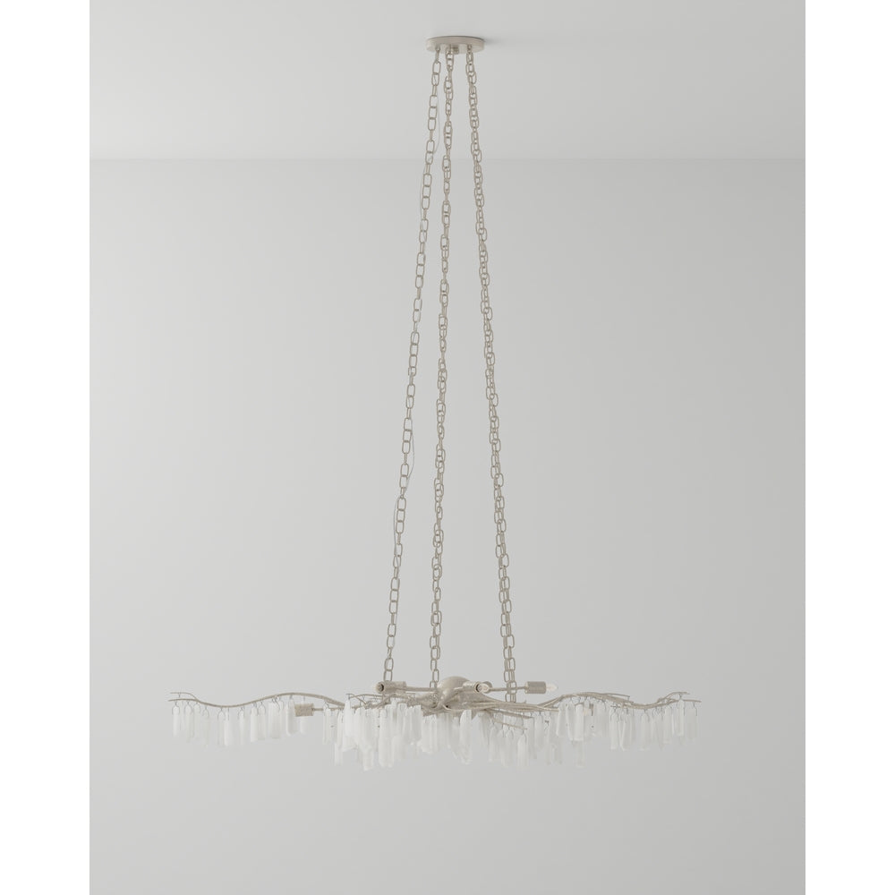 The Forest Light Silver Chandelier is an exceptional work of art dripping with quartz crystals. The textured silver finish is a perfect complement to the quartz on this sculptural ten-light chandelier. We also offer the Forest Light, in our Aviva Stanoff Collection, in a sconce and in several chandelier finishes.