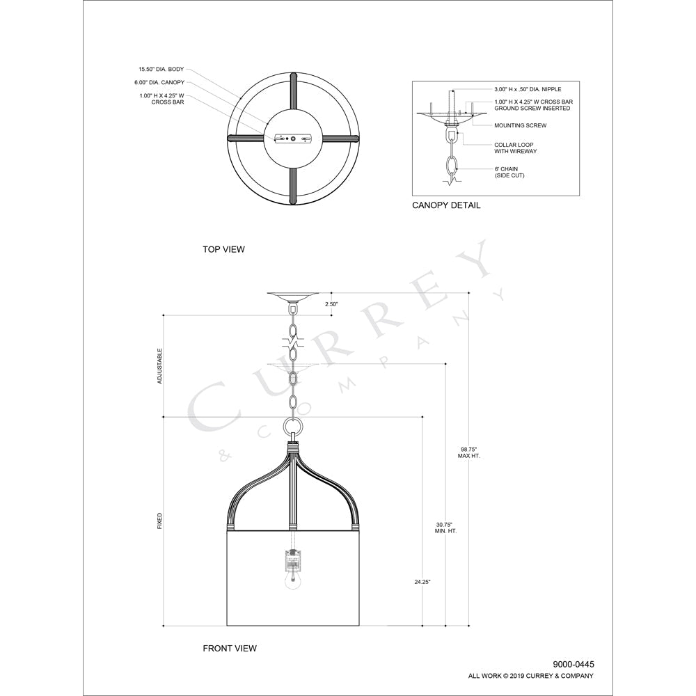 Currey & Company 9000-0445 Dunning Pendant in Blacksmith/Natural