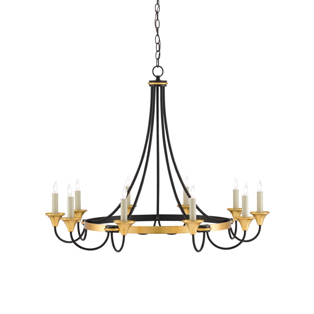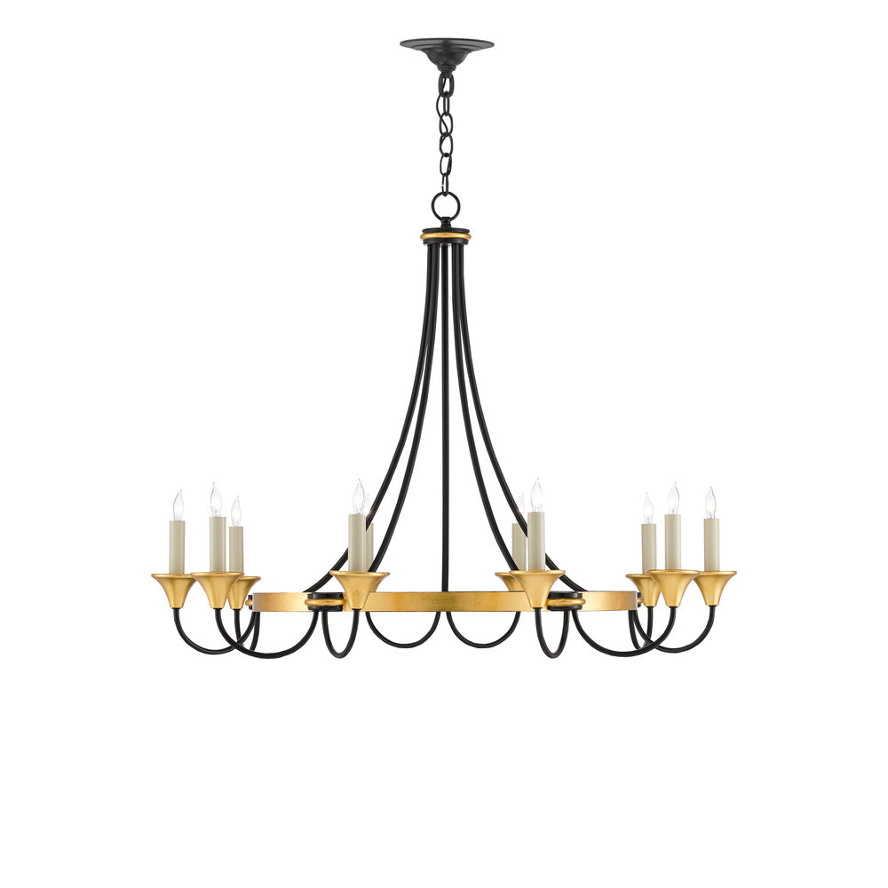 Currey & Company 9000-0474 Hanlon 10 Light Chandelier in Washed Black/Contemporary Gold Leaf
