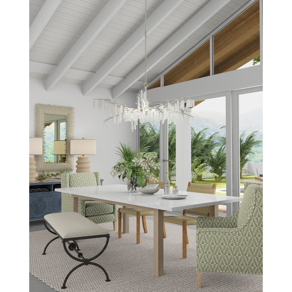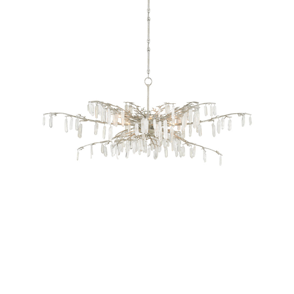 The Forest Dawn Silver Chandelier is a truly exceptional work of art dripping with natural crystals. The beautiful textured silver finish is a perfect complement to the quartz, the combination lending this silver chandelier a formal look. This crystal chandelier is in the Aviva Stanoff Collection.