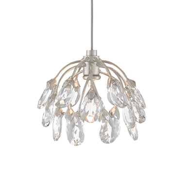 The Crystal Bud 7-Light Multi-Drop Pendant dangles flowers made of delicate faceted crystals from its canopy to make the shades effervescent and graceful. The silver pendant is luminous in its mix of painted silver and contemporary silver leaf finishes. This fixture is among Currey & Company's introduction of cluster lights, which includes 1-light up to 36-light configurations. We also have a number of chandeliers and orbs, and a wall sconce in this family of fixtures.