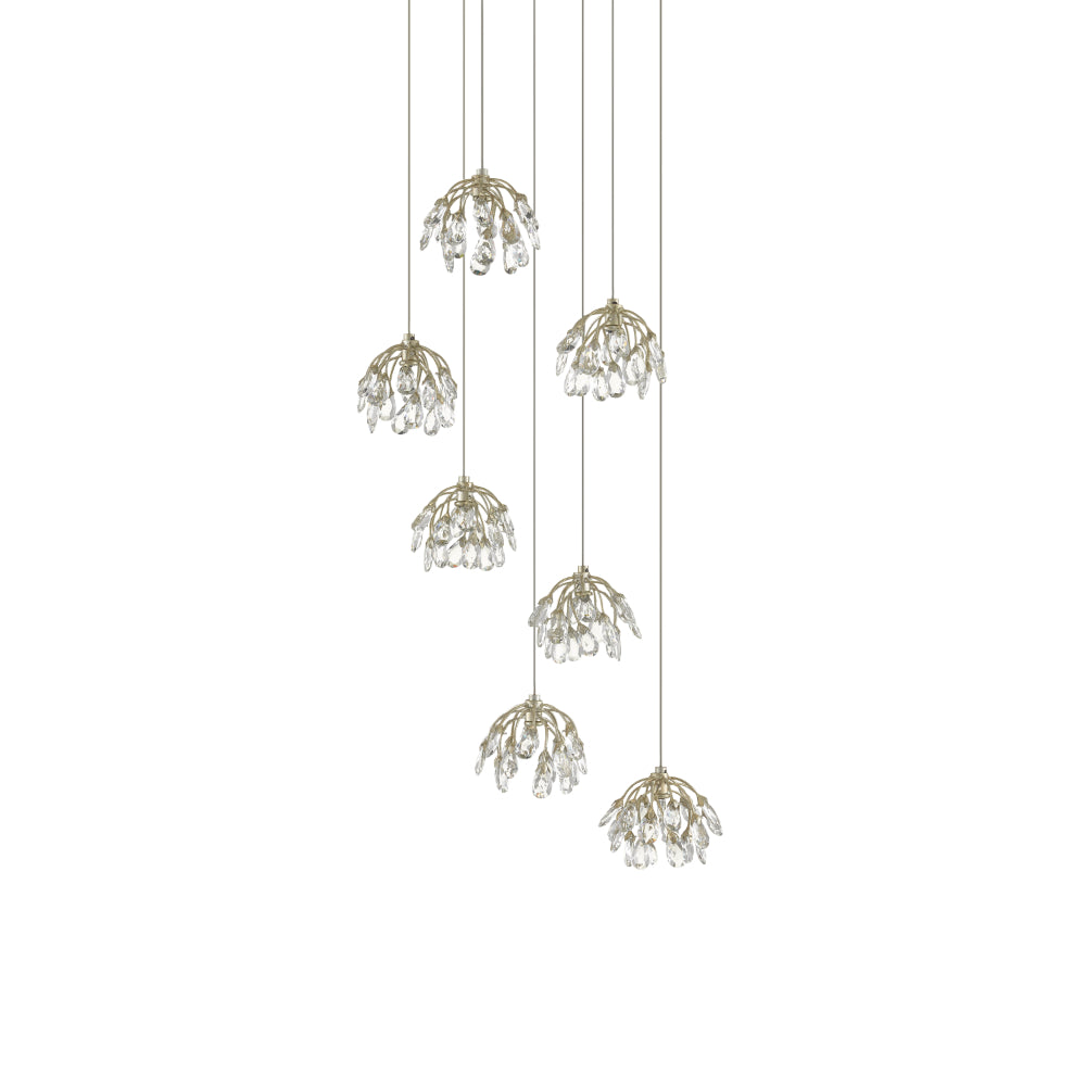 Currey & Company 9000-0669 Crystal Bud 7-Light Multi-Drop Pendant in Painted Silver/Contemporary Silver Leaf