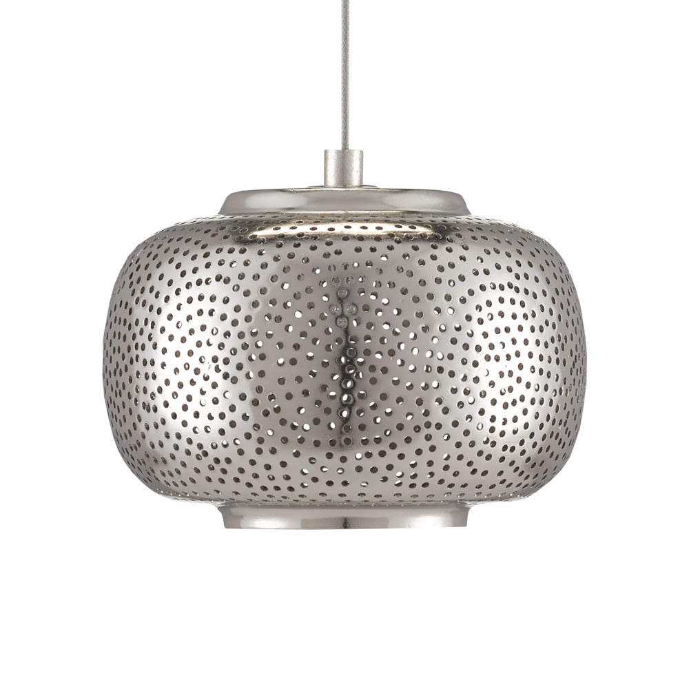 Our Pepper 1-Light Multi-Drop Pendant has a pierced metal shade in a mix of painted silver and nickel finishes. The textural metal orb is on point for modern farmhouse and industrial chic interiors. This fixture is among Currey & Company's introduction of cluster lights, which includes 1-light up to 36-light configurations.