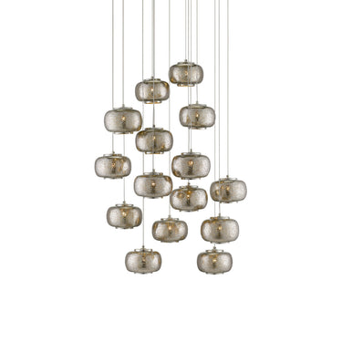 Currey & Company 9000-0691 Pepper Round 15-Light Multi-Drop Pendant in Painted Silver/Nickel
