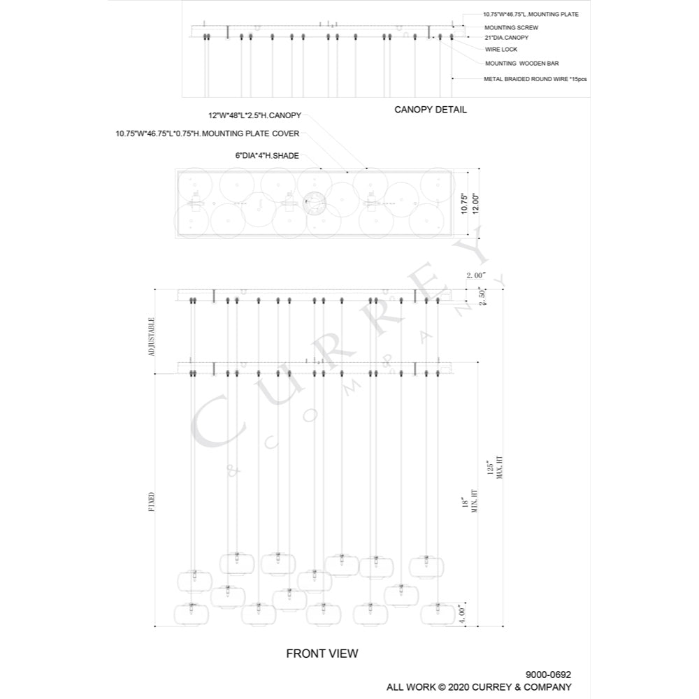 Our Pepper Rectangular 15-Light Multi-Drop Pendant has pierced metal shades in a mix of painted silver and nickel finishes. The textural metal orbs are on point for modern farmhouse and industrial chic interiors. This fixture is among Currey & Company's introduction of cluster lights, which includes 1-light up to 36-light configurations.