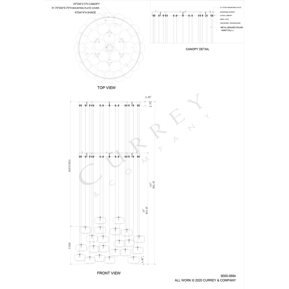 Our Pepper 36-Light Multi-Drop Pendant has pierced metal shades in a mix of painted silver and nickel finishes. The textural metal orbs are on point for modern farmhouse and industrial chic interiors. This fixture is among Currey & Company's introduction of cluster lights, which includes 1-light up to 36-light configurations.
