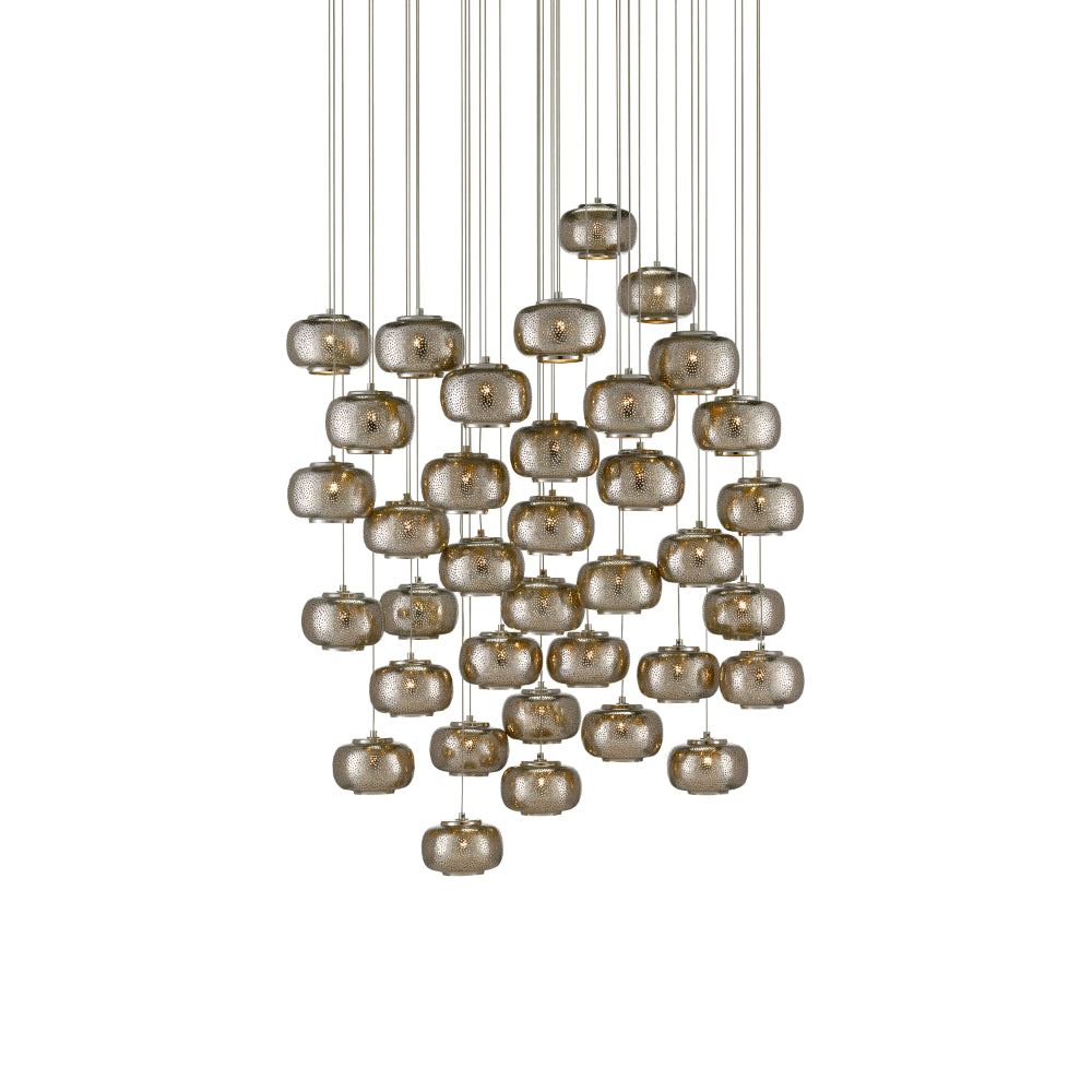 Currey & Company 9000-0694 Pepper 36-Light Multi-Drop Pendant in Painted Silver/Nickel