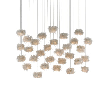 Currey & Company 9000-0700 Birds Nest 30-Light Multi-Drop Pendant in Painted Silver/Clear