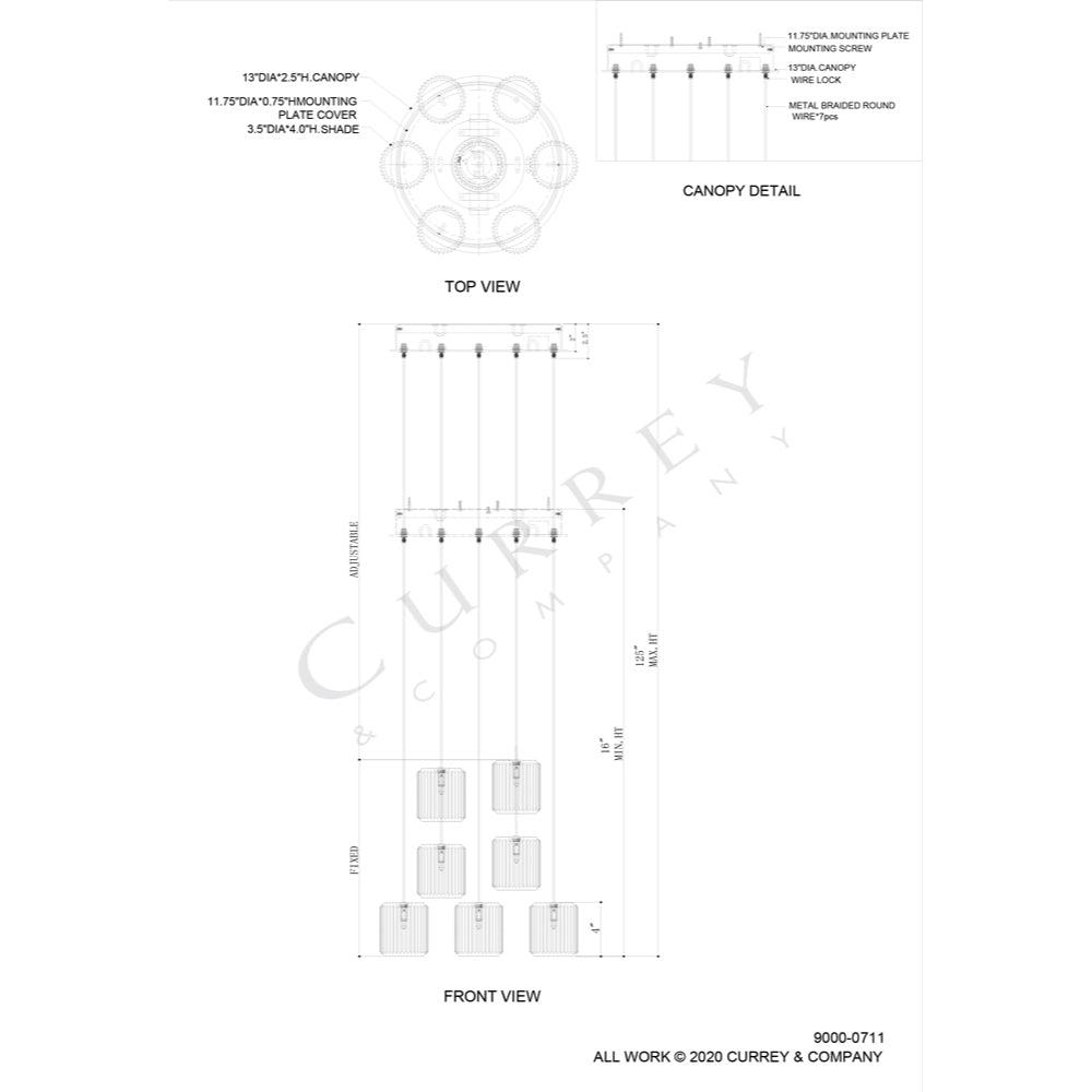 The Dove 7-Light Multi-Drop Pendant has pleated shades made of pale ceramic that diffuse the light wafting through them. The indentions and ridges on the shades of the white pendant bring a textural feel to this luminary even though it is monochromatic. This fixture is among Currey & Company's introduction of cluster lights, which includes 1-light up to 36-light configurations.