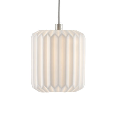 The Dove Rectangular 15-Light Multi-Drop Pendant has pleated shades made of pale ceramic that diffuse the light wafting through them. The indentions and ridges on the shades of the white pendant bring a textural feel to this luminary even though it is monochromatic. This fixture is among Currey & Company's introduction of cluster lights, which includes 1-light up to 36-light configurations.