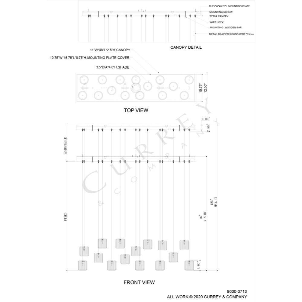Currey & Company 9000-0713 Dove Rectangular 15-Light Multi-Drop Pendant in Painted Silver/White