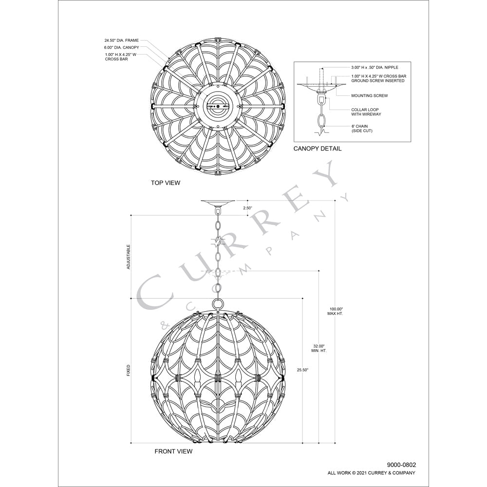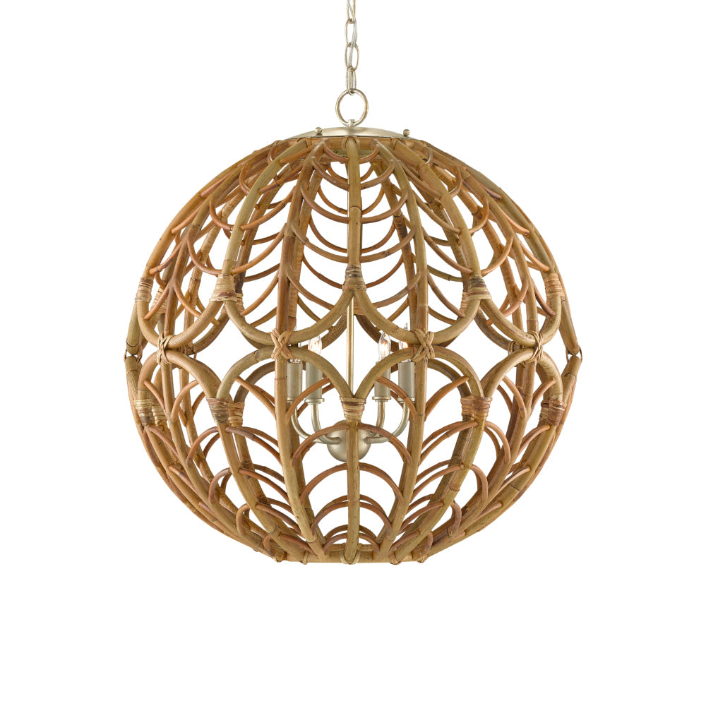 Currey & Company 9000-0802 Cape Verde Orb 4 Light Chandelier in Silver Leaf/Smokewood/Natural