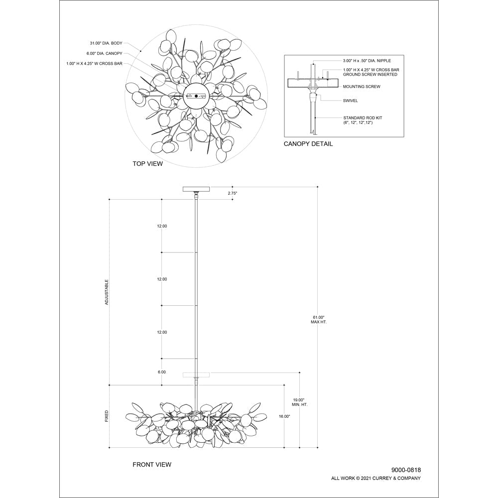 Currey & Company 9000-0818 Lunaria Small 4 Light Chandelier in Contemporary Silver Leaf