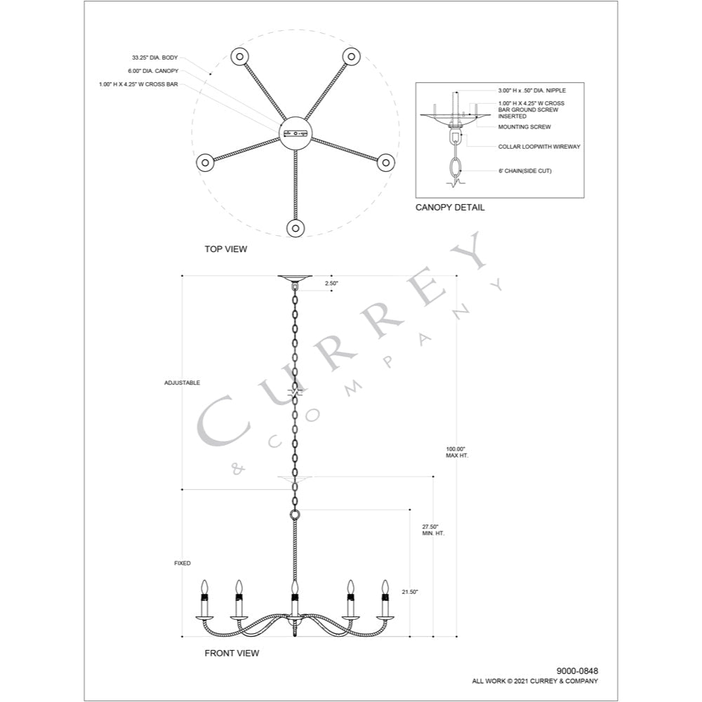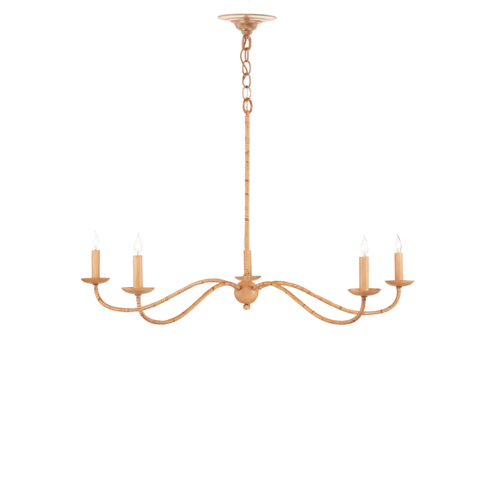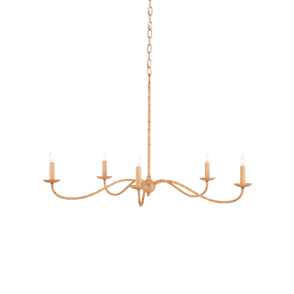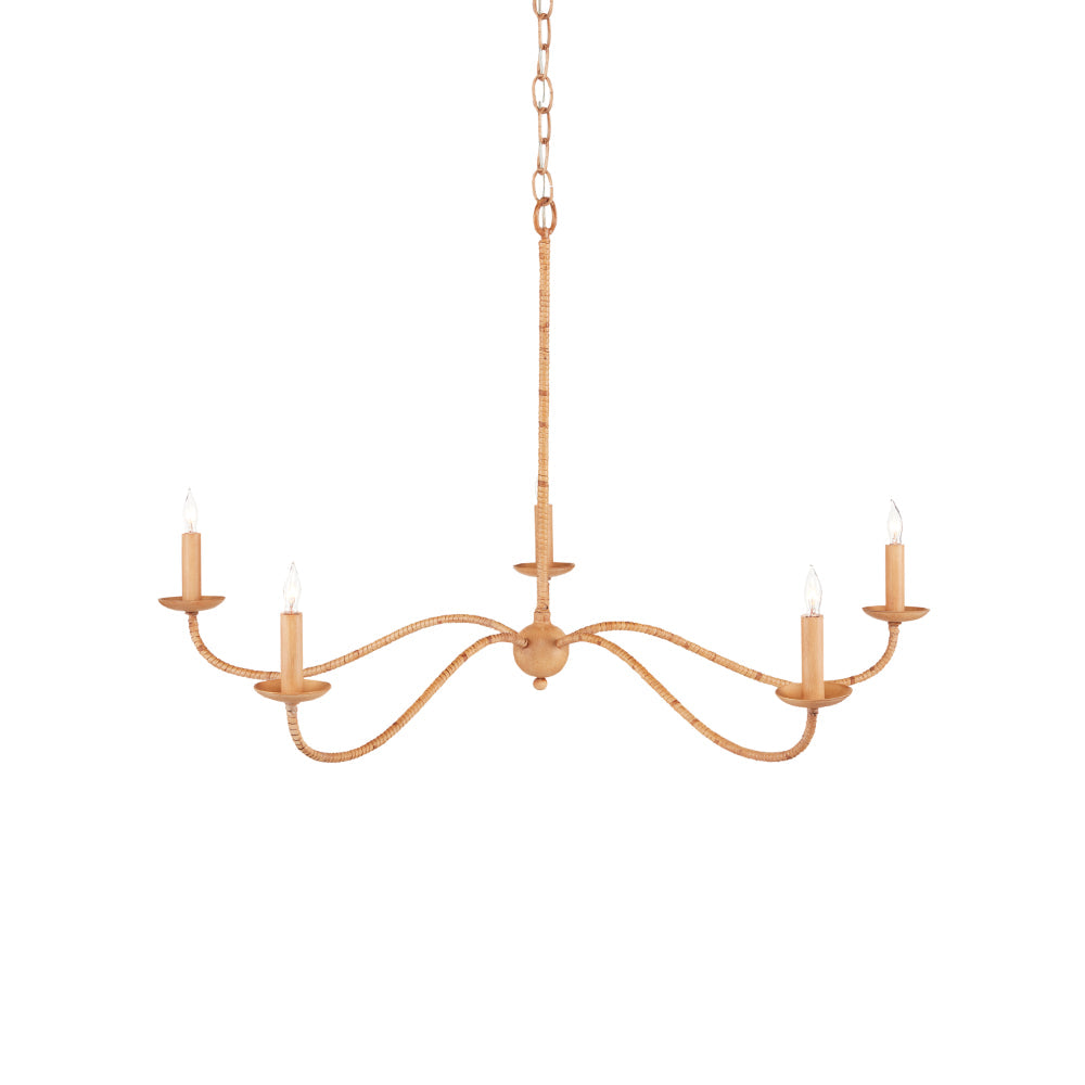 Currey & Company 9000-0848 Saxon Rattan Small 5 Light Chandelier in Painted Rattan/Natural Rattan
