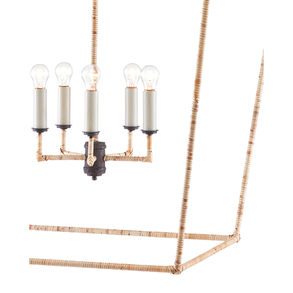 Currey & Company 9000-0871 Denison Rattan Grande 5 Light Lantern in Mole Black/Natural Rattan