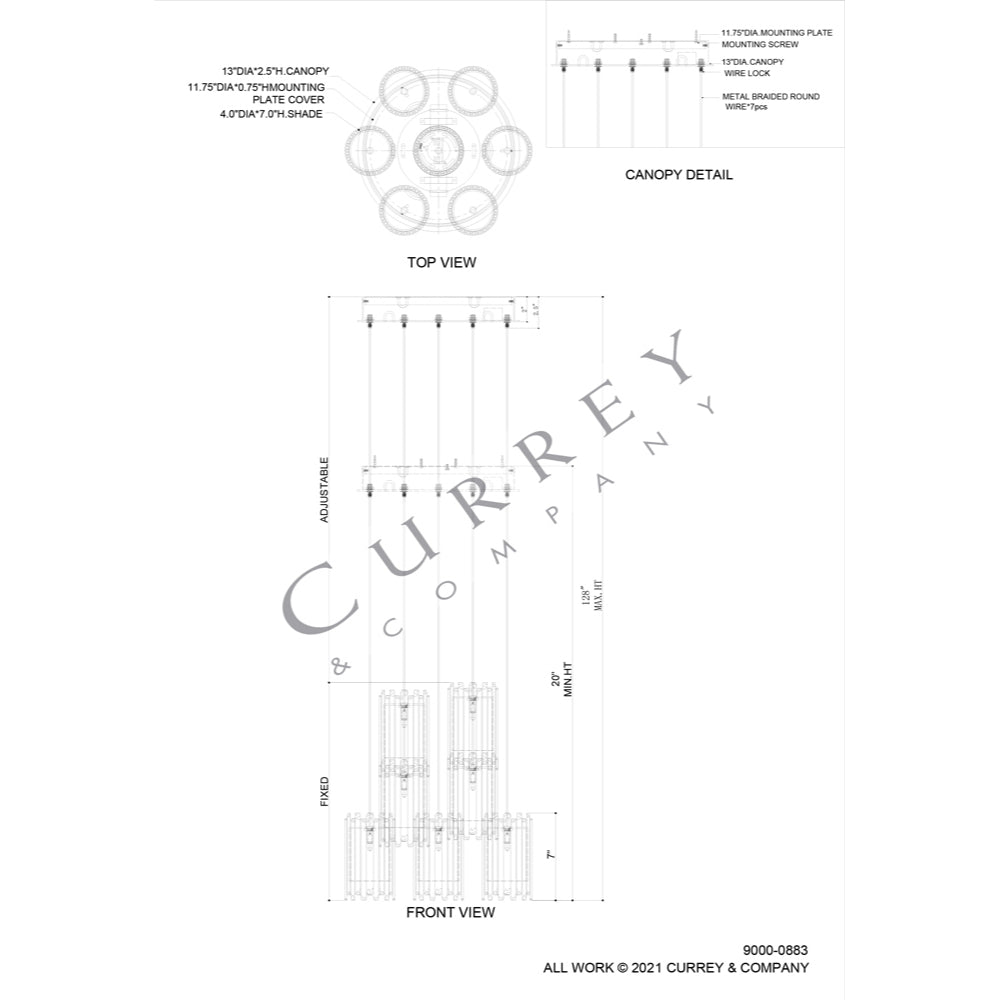 Currey & Company 9000-0883 Escenia 7-Light Multi-Drop Pendant in Natural/Painted Silver