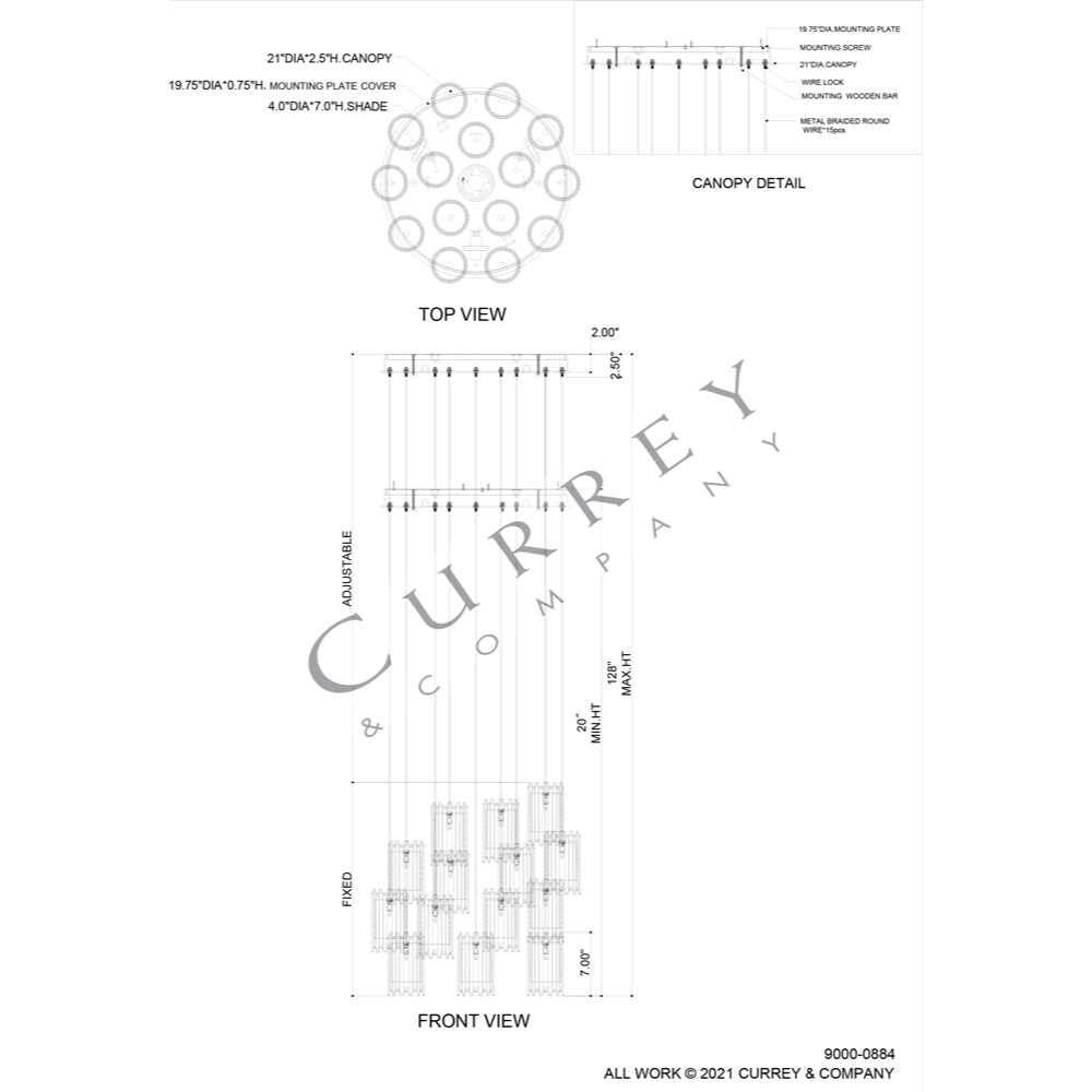 Currey & Company 9000-0884 Escenia Round 15-Light Multi-Drop Pendant in Natural/Painted Silver