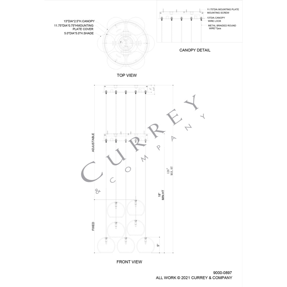 Currey & Company 9000-0897 Lazio 7-Light Multi-Drop Pendant in Natural/Painted Silver