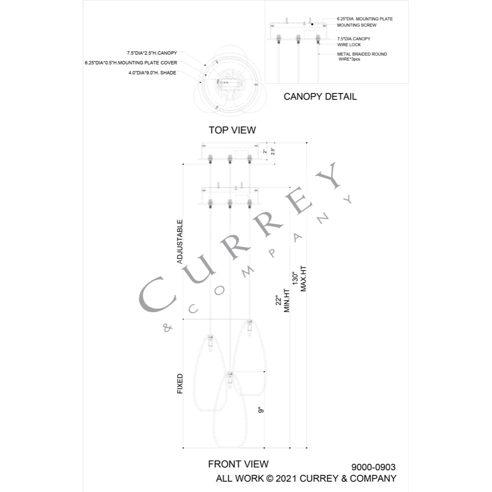 Currey & Company 9000-0903 Rame 3-Light Multi-Drop Pendant in Copper/Silver/Painted Silver