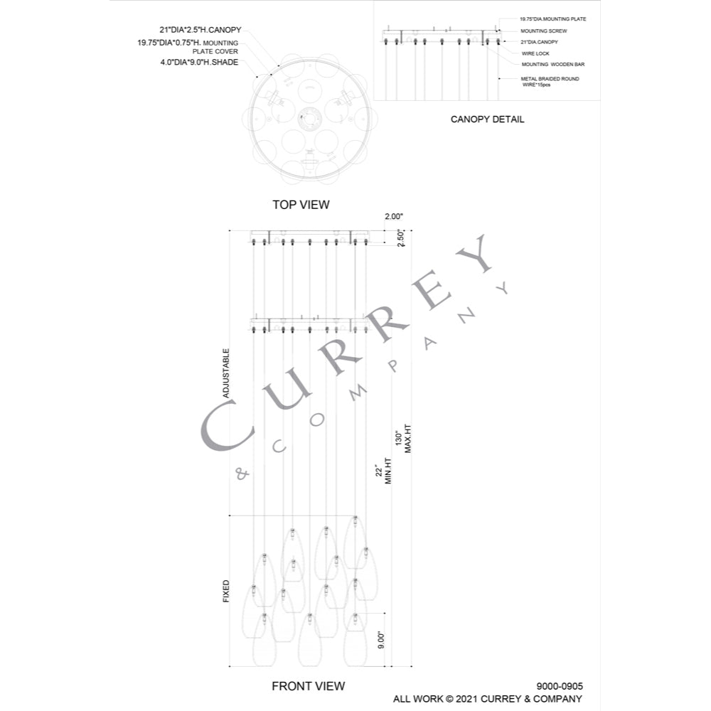 Currey & Company 9000-0905 Rame Round 15-Light Multi-Drop Pendant in Copper/Silver/Painted Silver