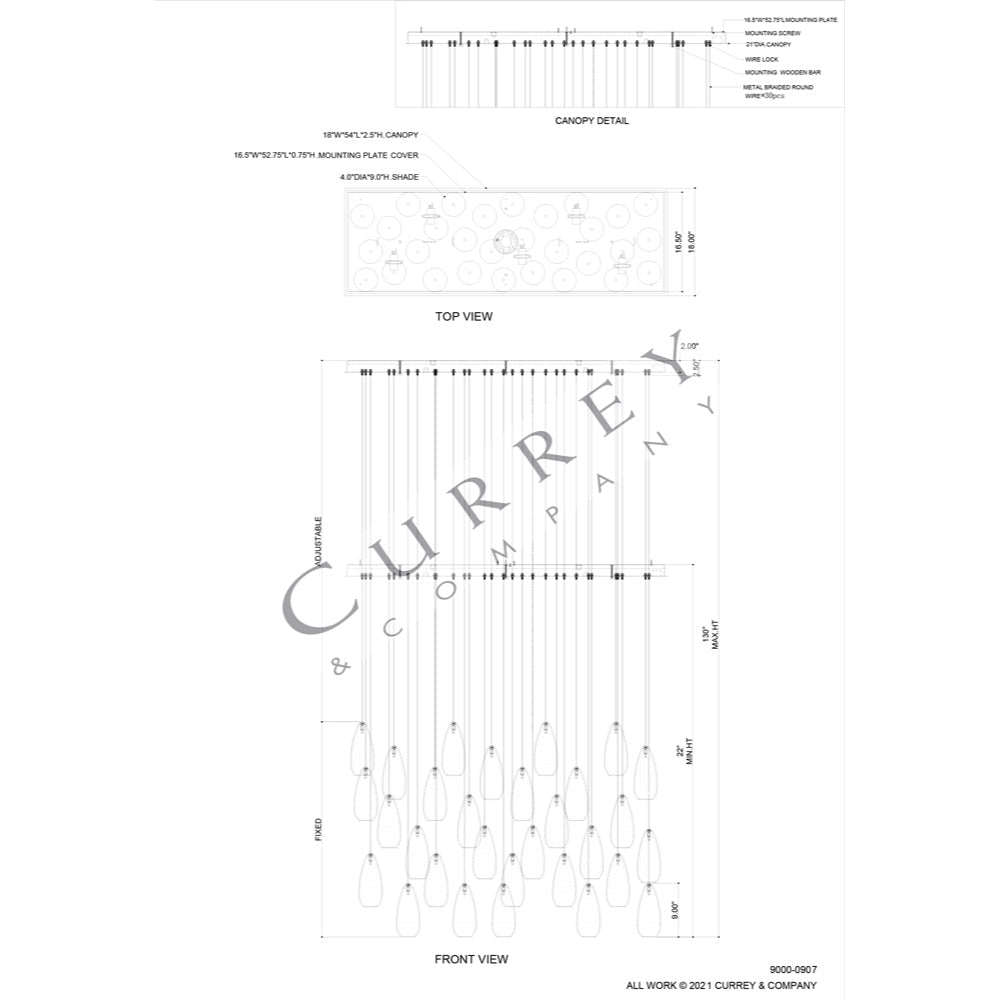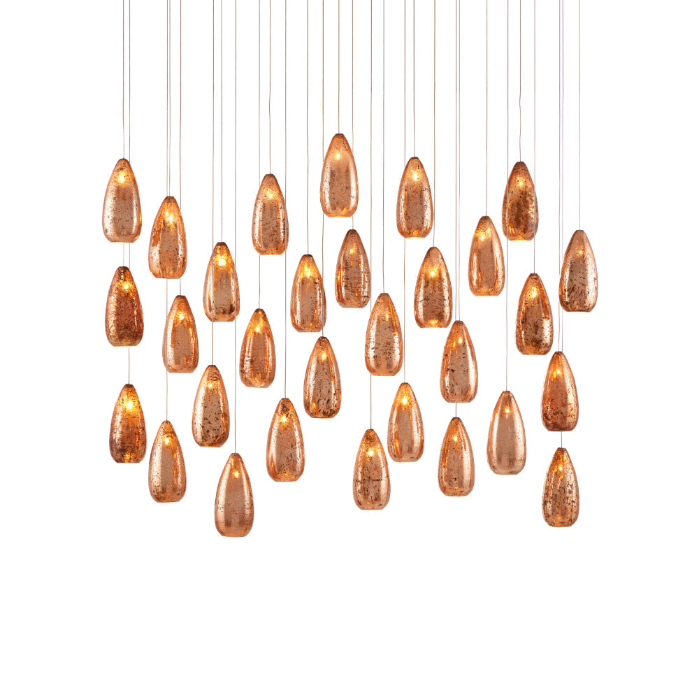 Currey & Company 9000-0907 Rame 30-Light Multi-Drop Pendant in Copper/Silver/Painted Silver