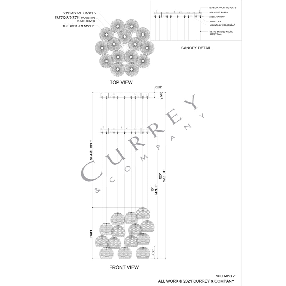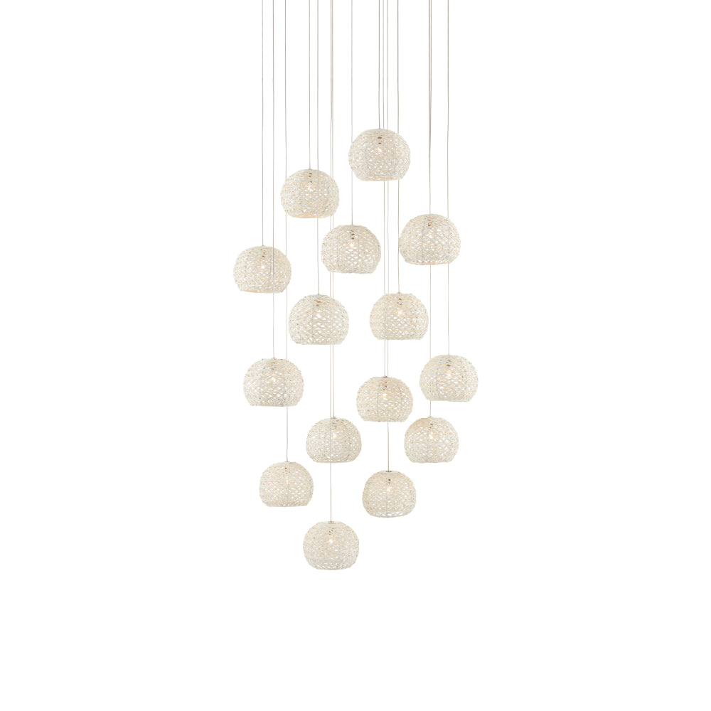 Currey & Company 9000-0912 Piero Round 15-Light Multi-Drop Pendant in White/Painted Silver