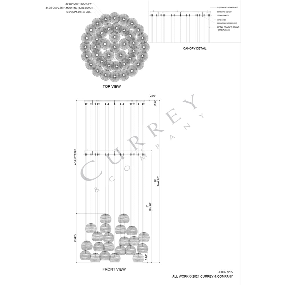 Currey & Company 9000-0915 Piero 36-Light Multi-Drop Pendant in White/Painted Silver
