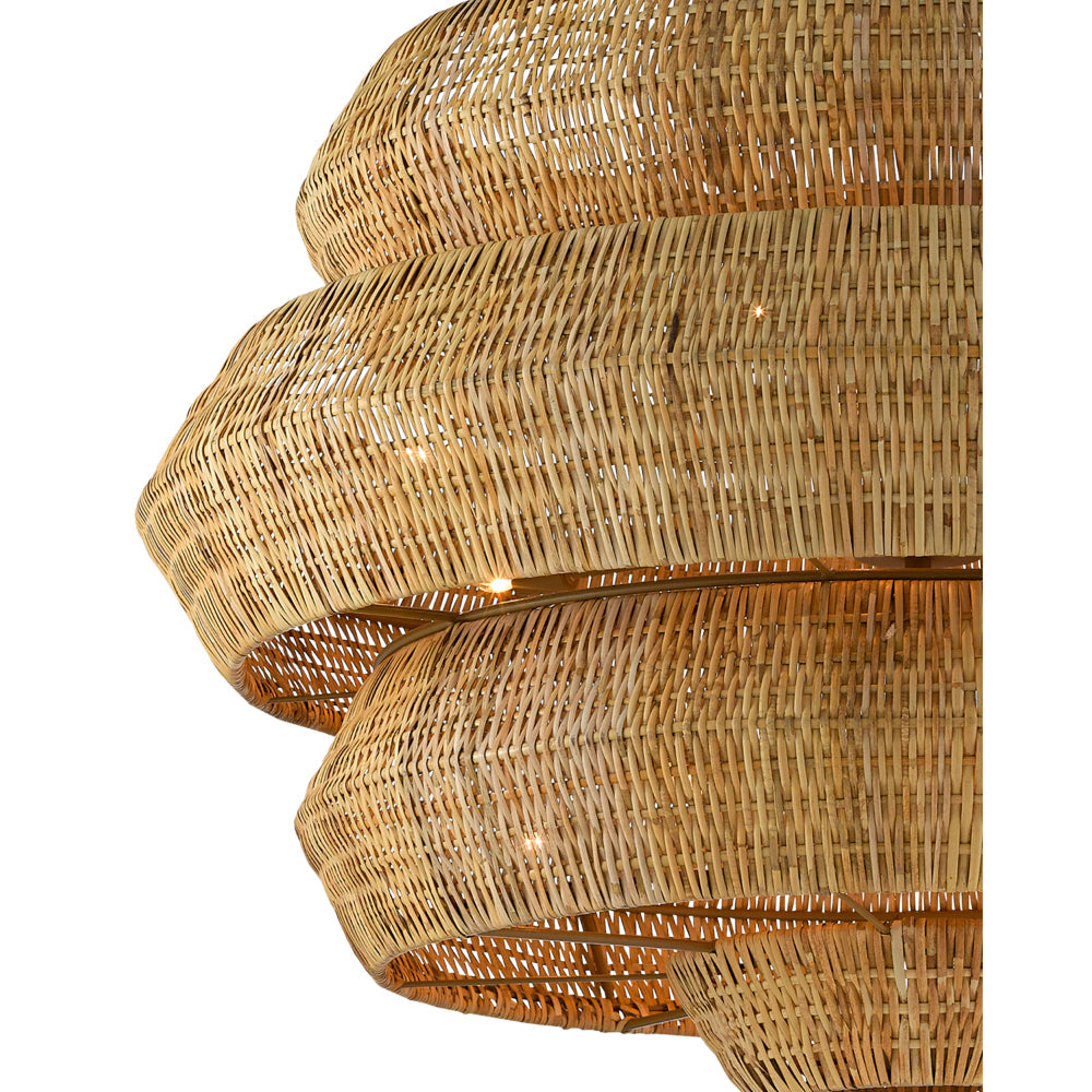 Painstakingly woven by artisans who use traditional techniques, the Antibes Grande Chandelier is a marriage of artistry and high-quality construction. Natural rattan forms the body of this geometric chandelier supported by a wrought iron frame in a khaki finish. The rattan chandelier is one of several fixtures in the Antibes family.