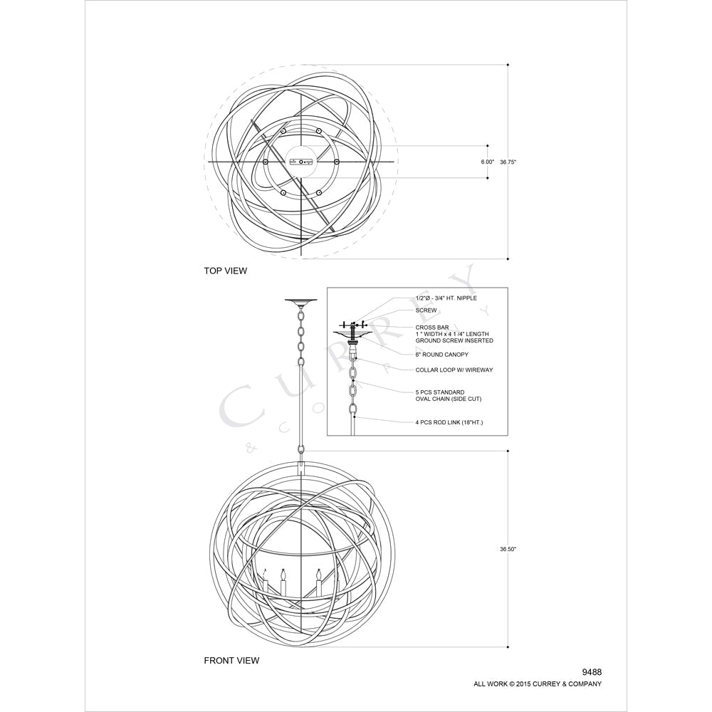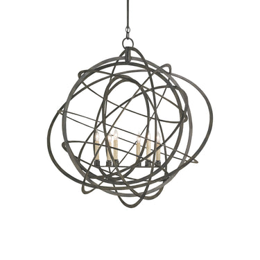 Currey & Company 9488 Genesis Orb 6 Light Chandelier in Black Iron