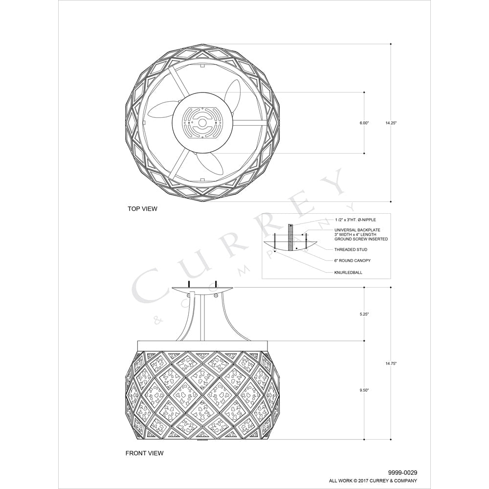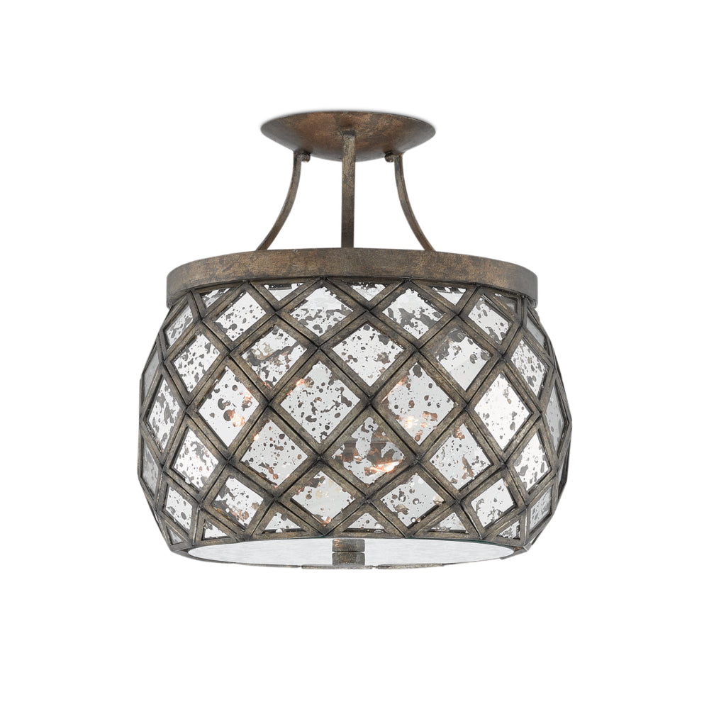 Currey & Company 9999-0029 Buckminster Semi-Flush in Pyrite Bronze/Raj Mirror